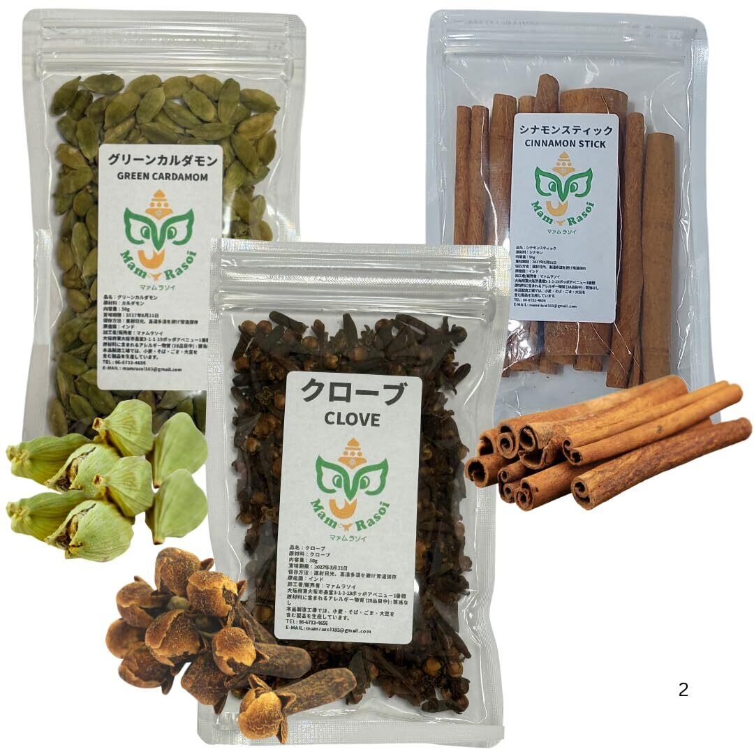 【人気商品】ホール スパイス セット 3種類 各50g (クローブ シナモン カルダモン) 無添加