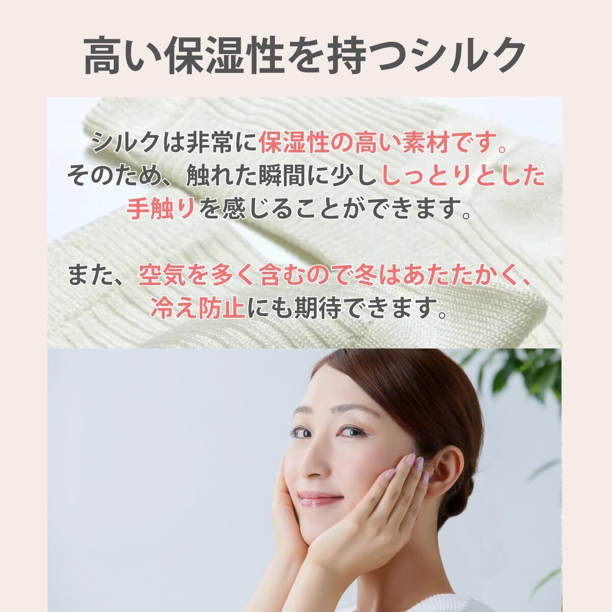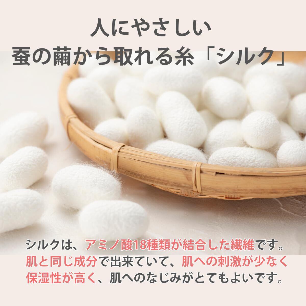 お肌にしっとりサラサラ、とても心地よいシルク素材を使用しているので季節を問わずお使い頂けます。