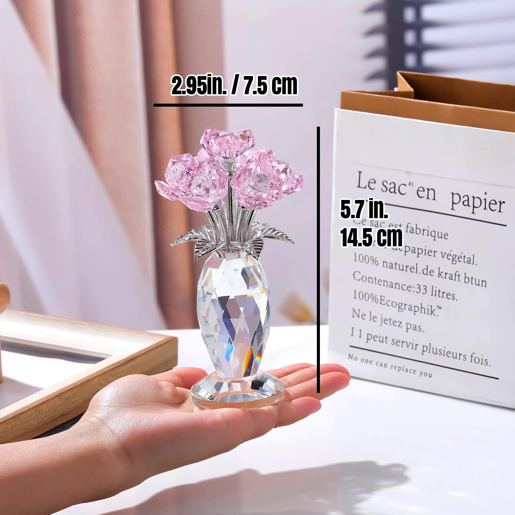 ピンククリスタルローズギフトガラスローズ置物 結婚 女性への誕生日プレゼントに人気 クリスタルガラスの枯れないバラの花束 誕生日プレゼント 結婚祝い バレンタインデー 母の日 彼女 妻 母への贈り物