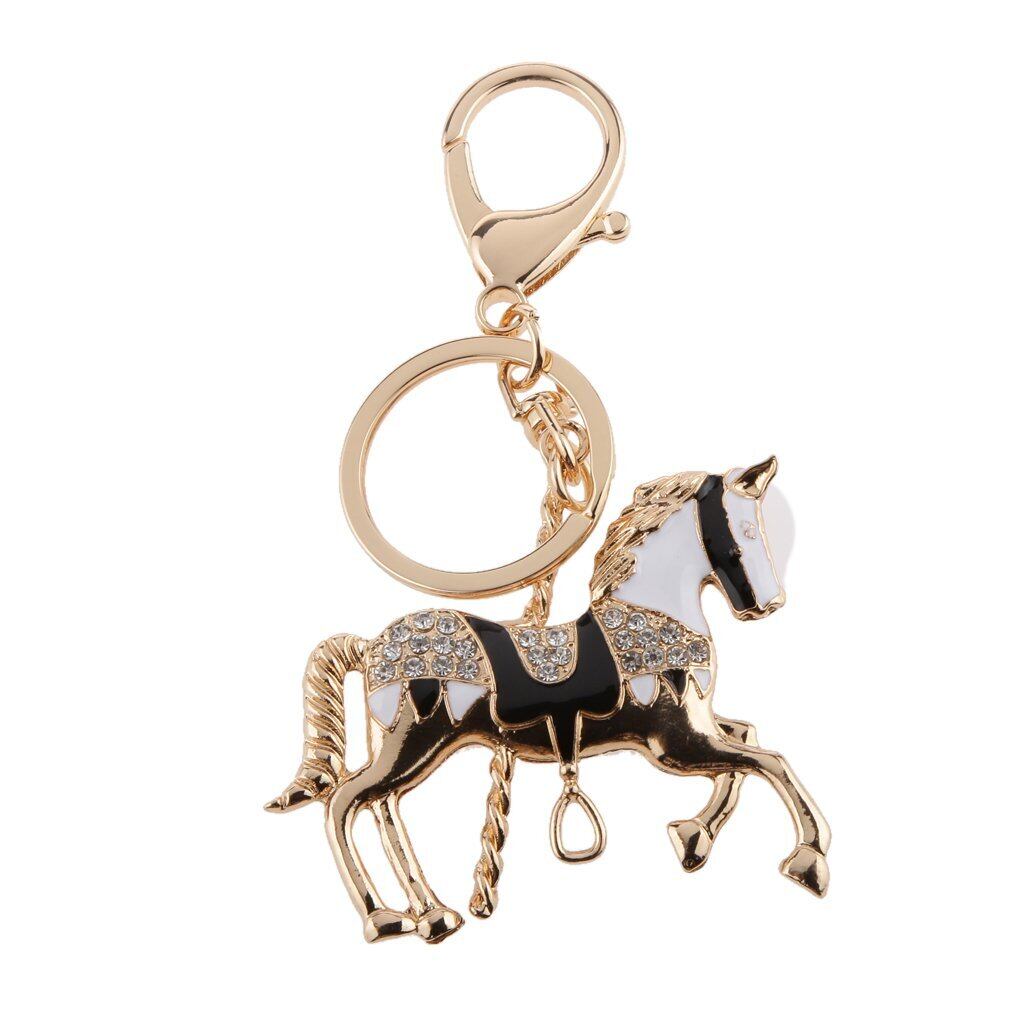 黒 ラインストーン クリスタル 馬のペンダント キーリング キーチェーン アクセサリー 贈り物