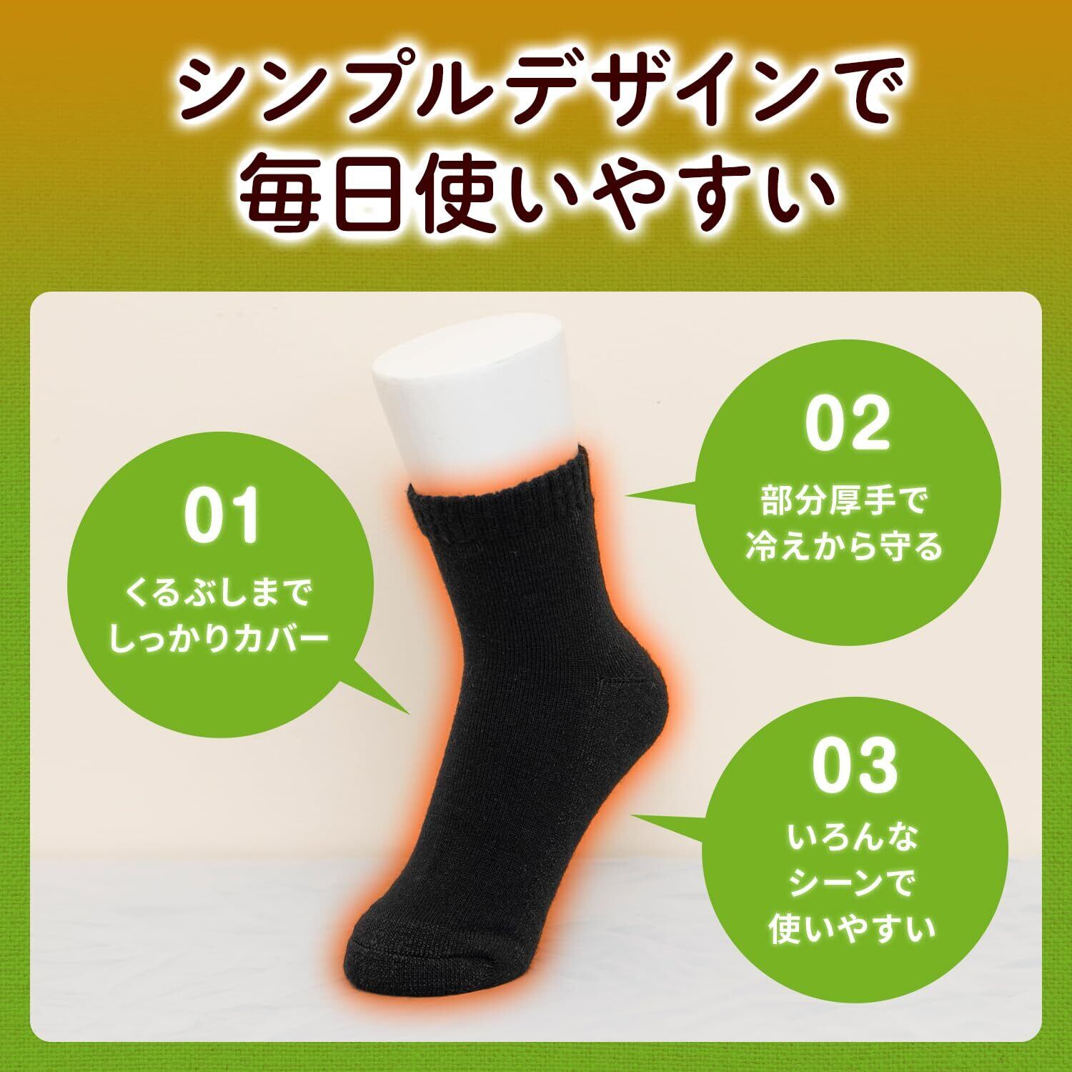 このクルーソックスは、足先からくるぶしまでを保温するために使われます。通常の靴下のように着用してください。