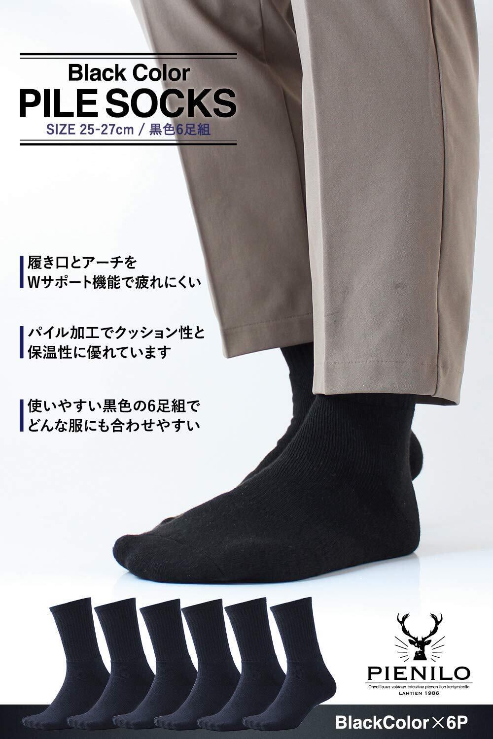 【特価セール】[PIENILO] 靴下 メンズ ビジネスソックス 厚手 あったかい パイルソックス 春秋冬 6足セット 25-27cm