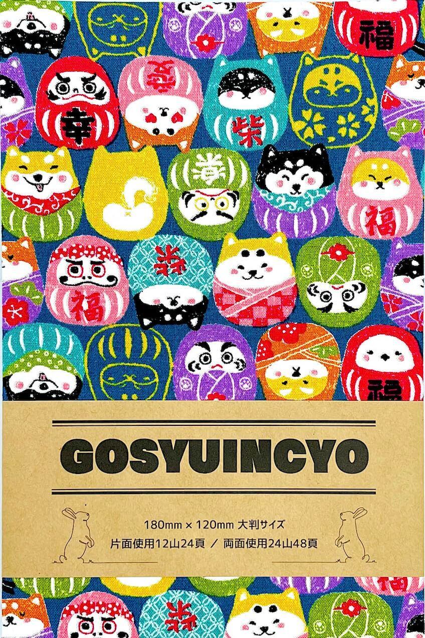 【2022最新】【犬和柄】大判サイズ 御朱印帳・蛇腹タイプ・12山24頁(片面使い)/24山48頁(両面使い) (だるま(青))