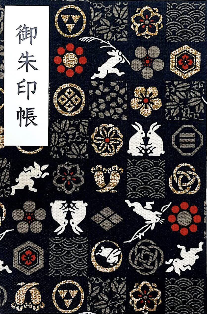 【市松あそび兎】大判サイズ 御朱印帳・蛇腹タイプ・12山24頁(片面使い)/24山48頁(両面使い) (黒)