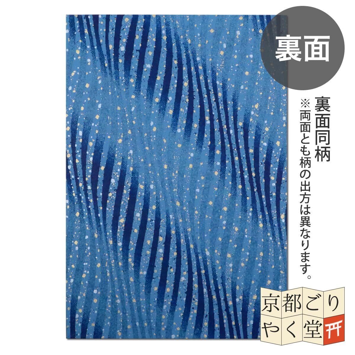 うるわしき 御朱印帳 大判 サイズ おしゃれ かわいい 友禅紙 鳥の子紙 (カバーなし, よろけ縞(青))