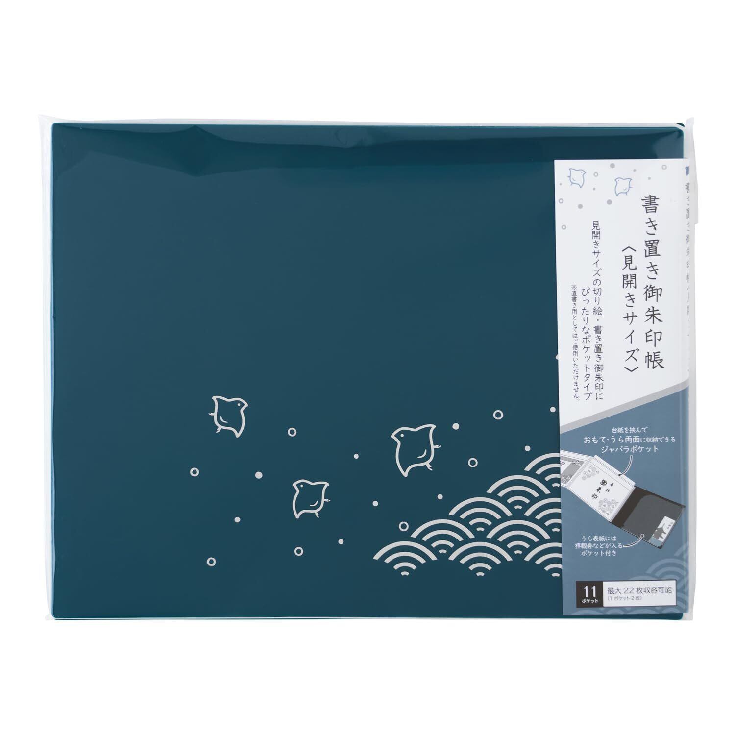 リヒトラブ 書き置き 御朱印 見開きサイズ ジャバラ式 ポケット11枚 深藍 A373-28