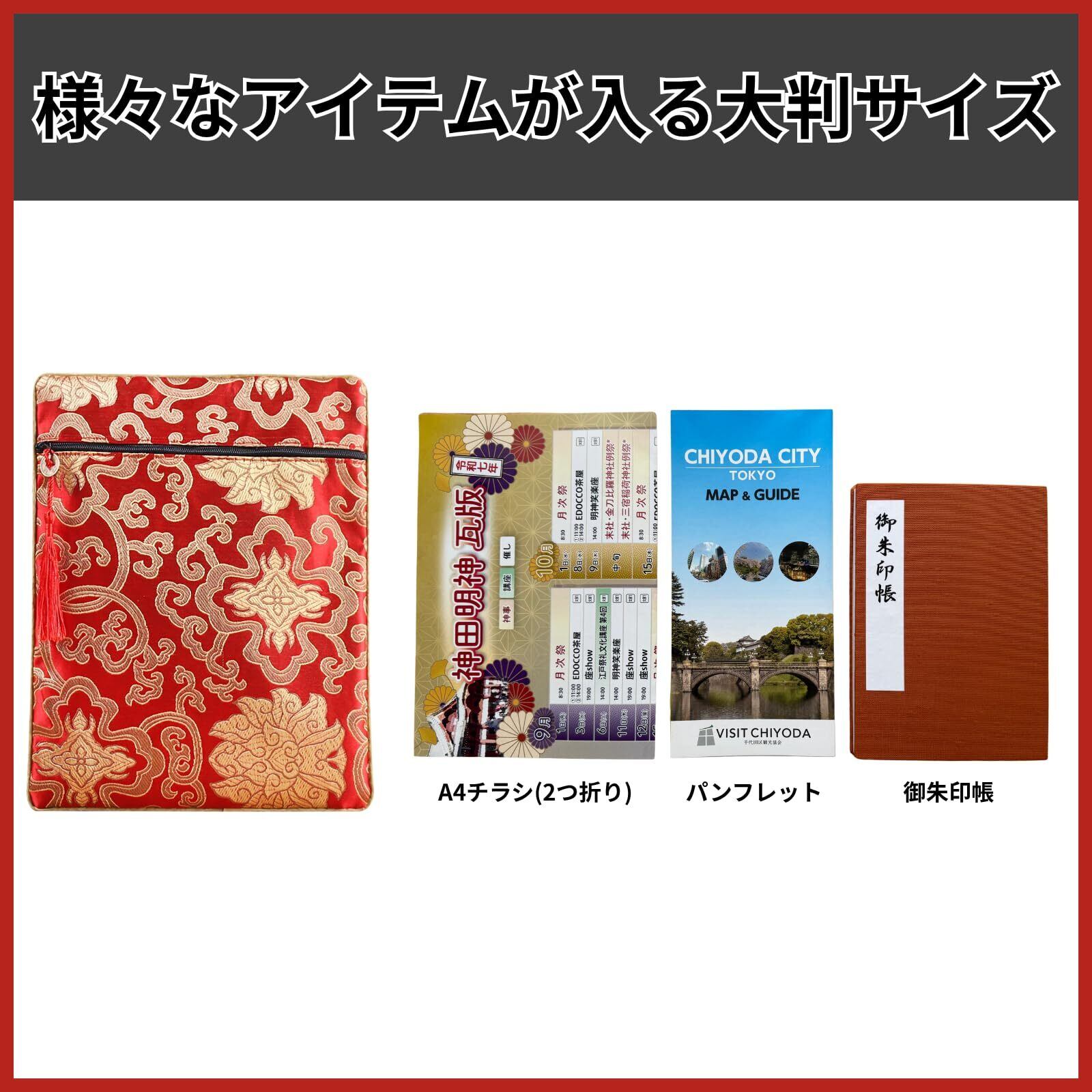 A4二つ折りのチラシやパンフレットも余裕で入る大判サイズ。御朱印帳入れとしてだけでなく、旅の資料や地図をまとめて収納できる実用性も魅力です。