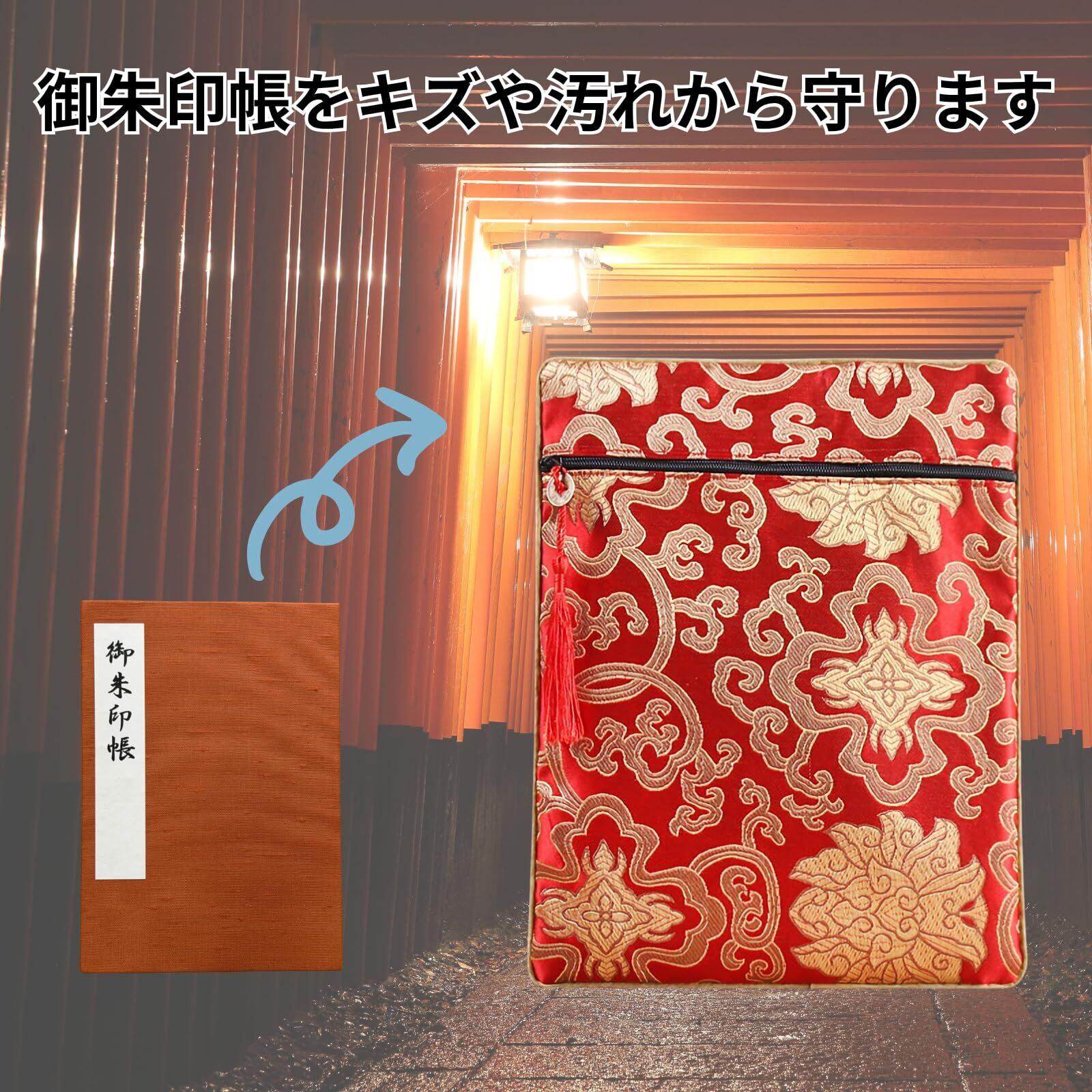 御朱印帳 ケース カバー 袋 ポーチ 大判 御朱印帳入れ 収納 小物入れ ファスナー 風水 和風 (ゴールド)