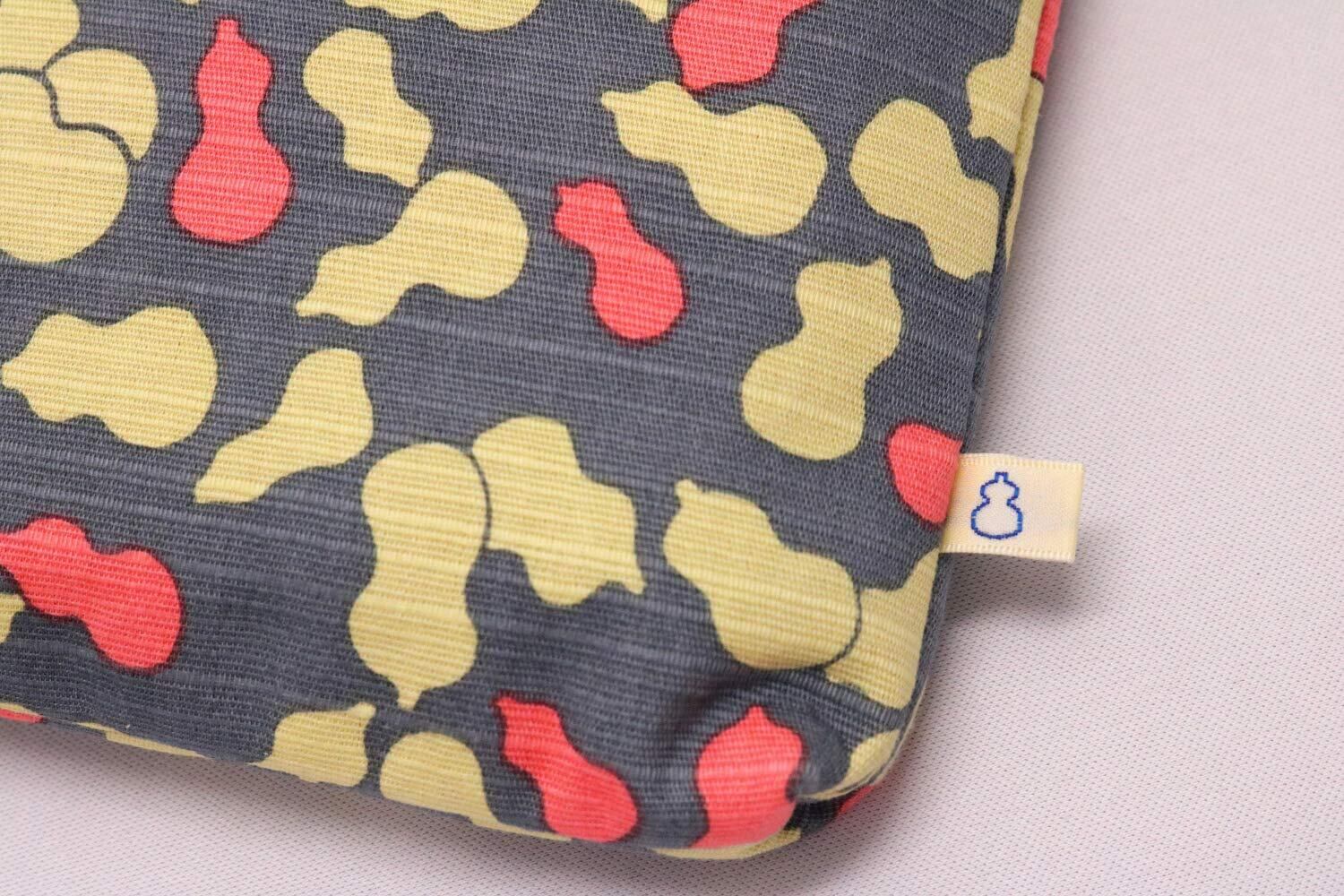 【特価商品】京佑 日本製 綿 ポーチ コスメ メイク 約21×15cm 縁起 L字ファスナー 化粧 旅行 ご朱印帳入れ MASHU ひょうたん グレー 和柄