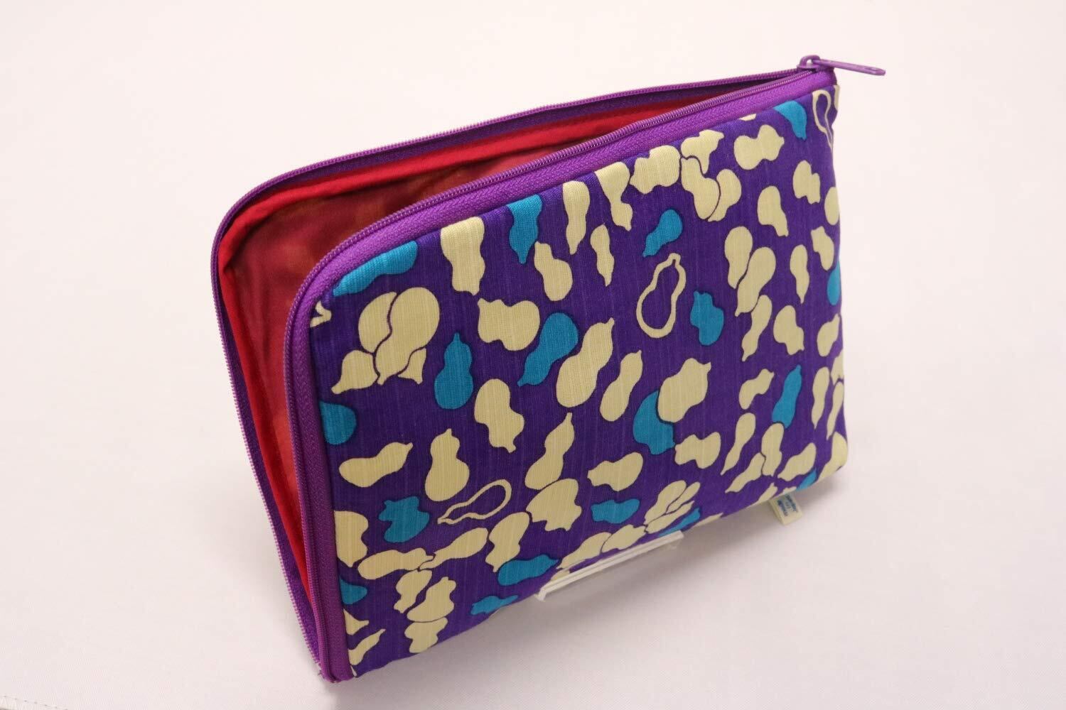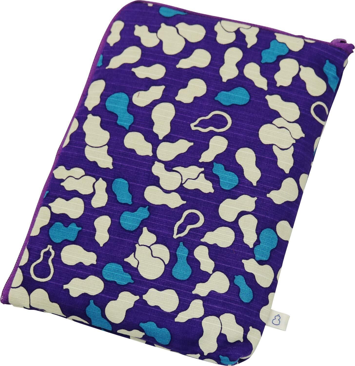 京佑 日本製 綿 ポーチ コスメ メイク 約21×15cm 縁起 L字ファスナー 化粧 旅行 ご朱印帳入れ MASHU ひょうたん 紫 和柄