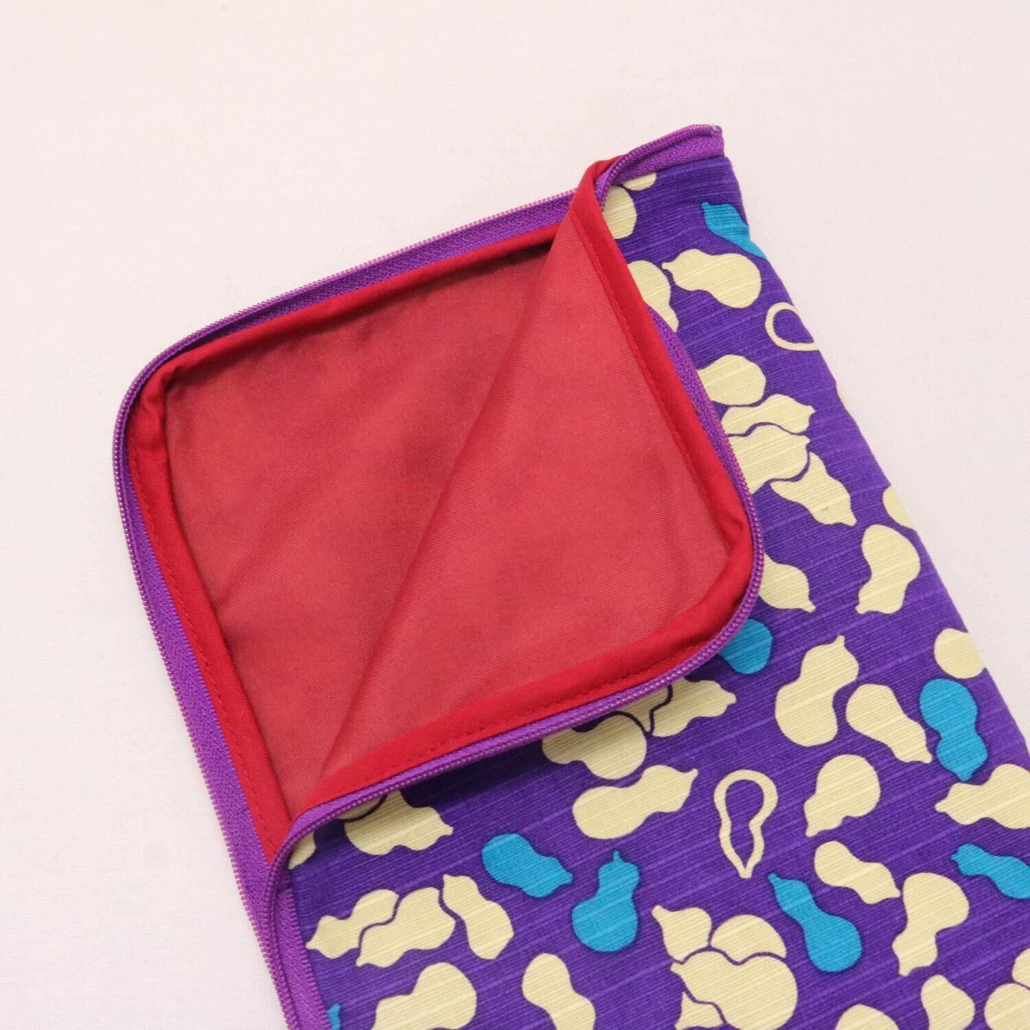 【特価商品】京佑 日本製 綿 ポーチ コスメ メイク 約21×15cm 縁起 L字ファスナー 化粧 旅行 ご朱印帳入れ MASHU ひょうたん 紫 和柄