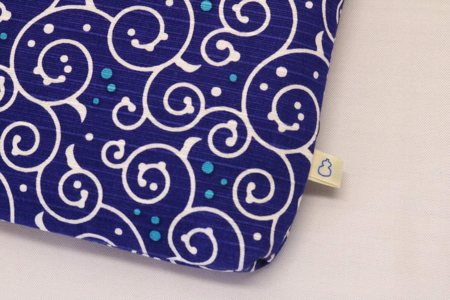 京佑 日本製 綿 ポーチ コスメ メイク 約21×15cm からくさ L字ファスナー 化粧 旅行 ご朱印帳入れ ドット唐草 紺 和柄
