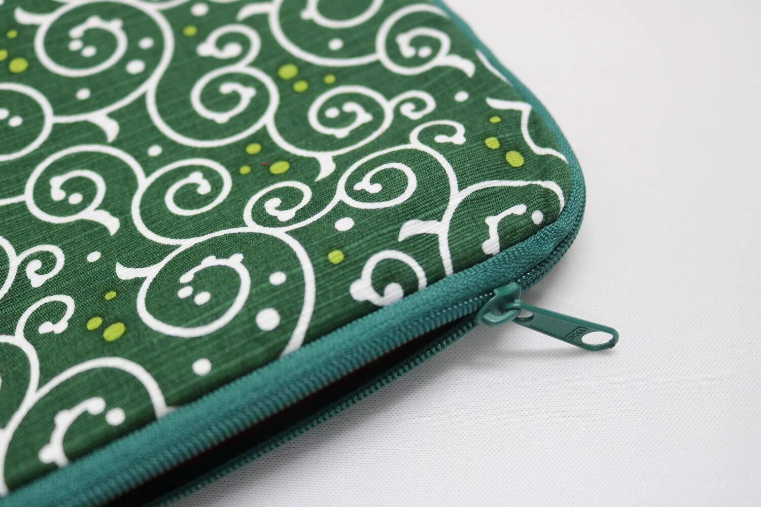 京佑 日本製 綿 ポーチ コスメ メイク 約21×15cm からくさ L字ファスナー 化粧 旅行 ご朱印帳入れ ドット唐草 緑 和柄