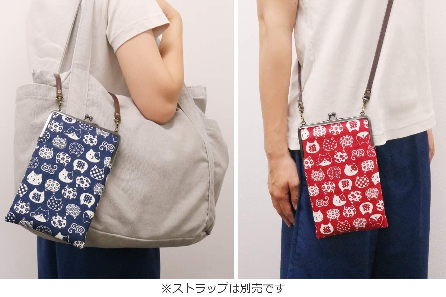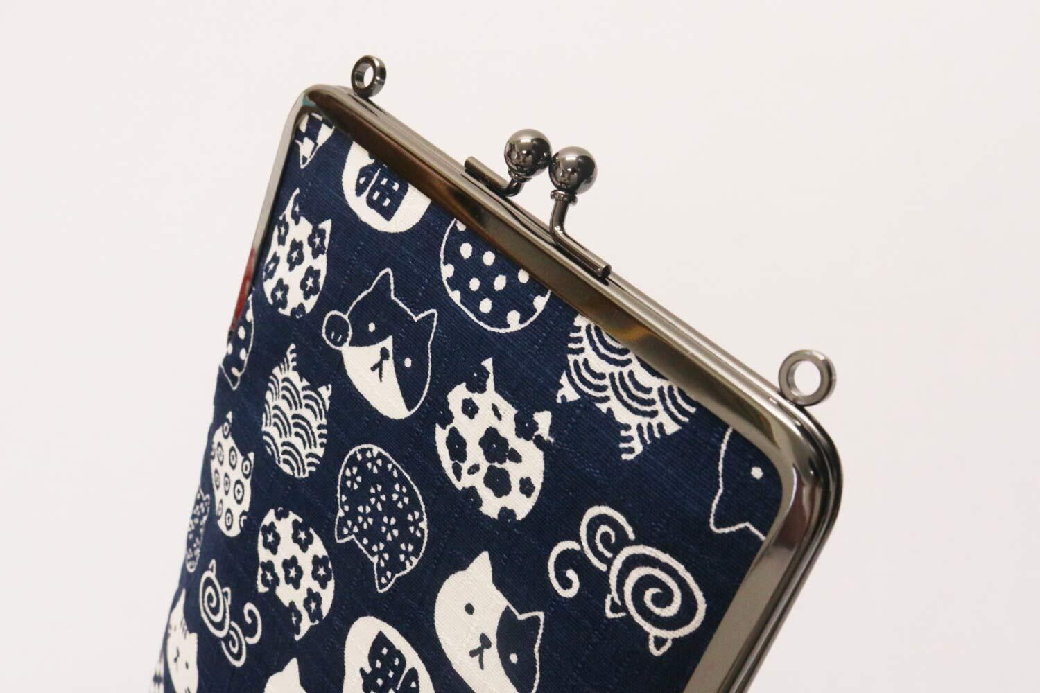 京佑 日本製 御朱印帳入れ がま口 スリム 御朱印帳ケース 綿 23.5×14.5cm にゃんこもん 紺 猫 ねこ