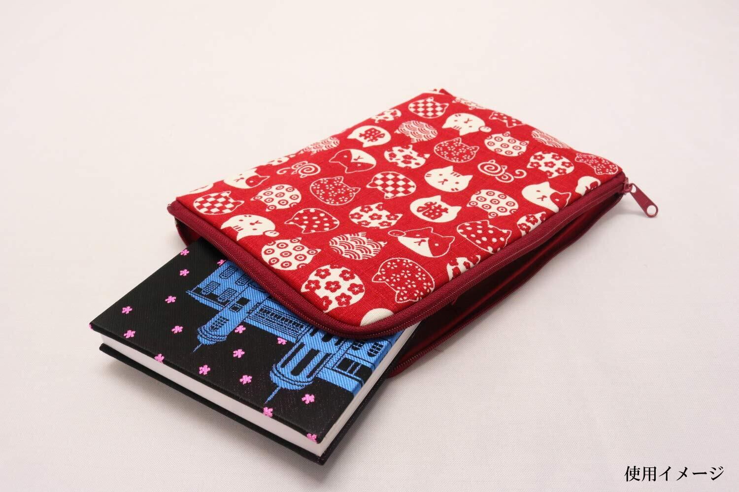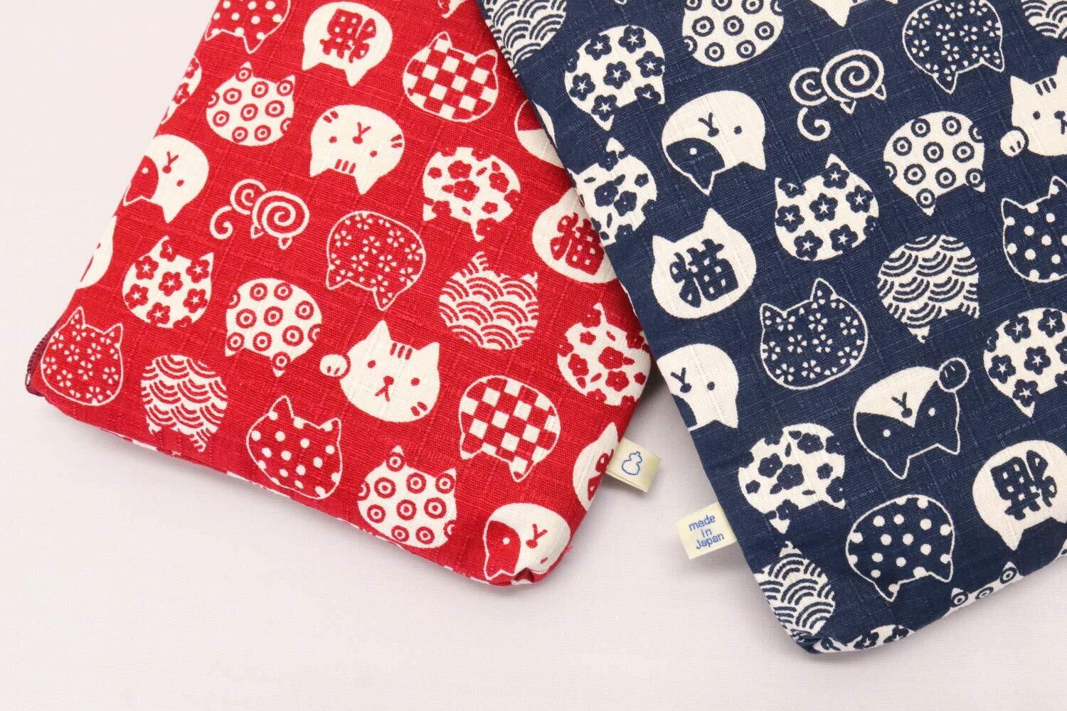 京佑 日本製 綿 ポーチ コスメ メイク 約21×15cm 猫 ねこ L字ファスナー 化粧 旅行 ご朱印帳入れ にゃんこもん 赤 和柄