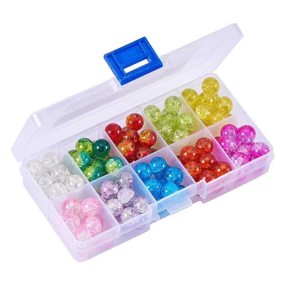 【2022最新】PH PandaHall 約100個/箱 直径10mm ガラスビーズ 10色セット クラックビーズ 透明 ラウンド ビーズ ジュエリー用 手作り用品 DIY用 手芸用品 クラフト用品 ハンドメイド アクセサリーパーツ 基礎パーツ 混合色