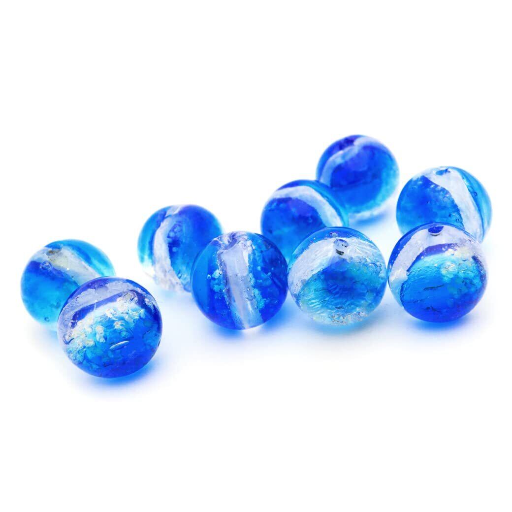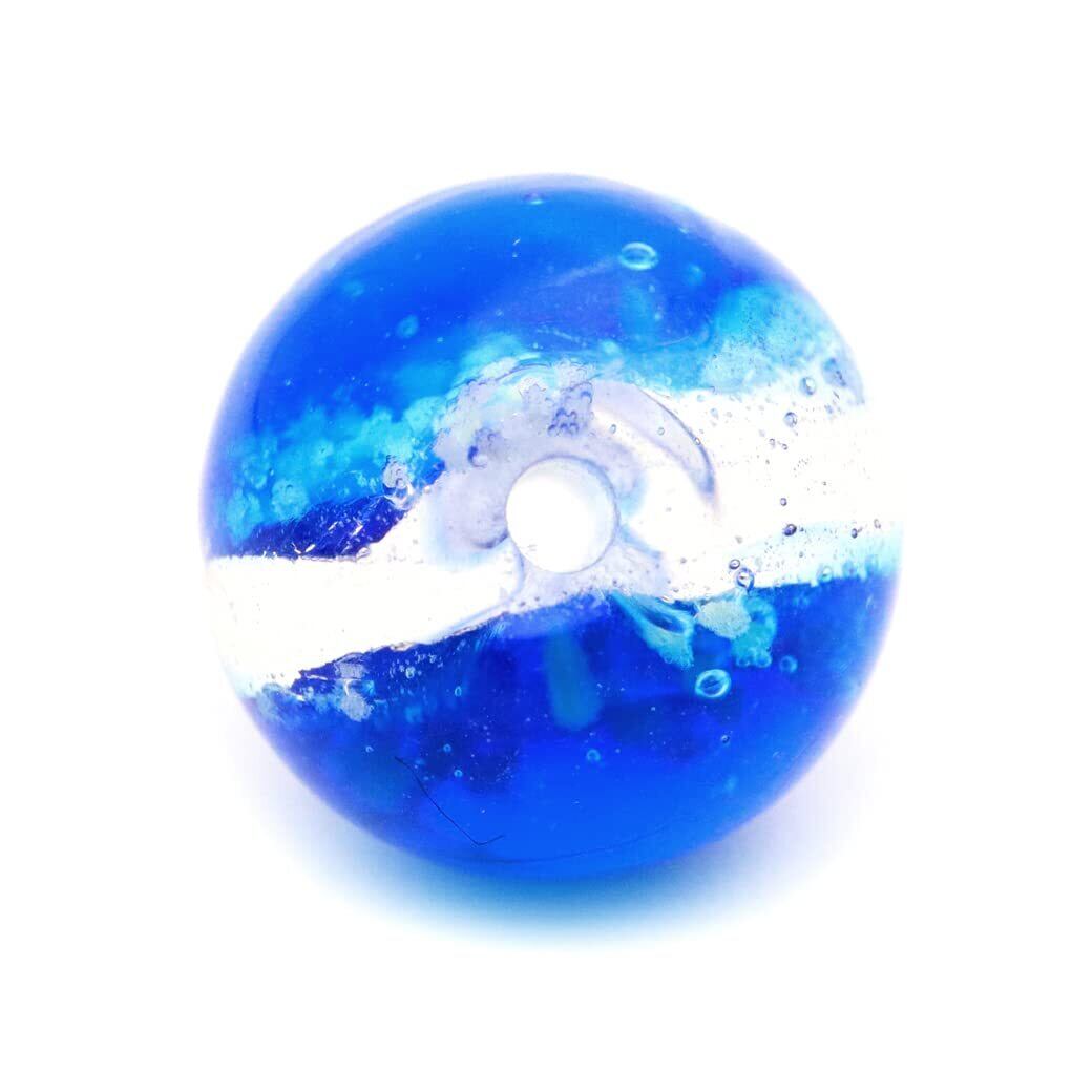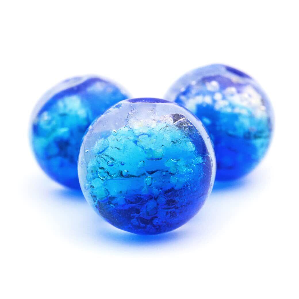 ※暗闇で光る夜光タイプです。 ◆爽やかなヨナグニブルー 与那国島の海と空をイメージしたホタルガラスが登場 その名もヨナグニブルー。鮮やかなグラデーションがとても綺麗です! 与那国の海は透明度が高く、澄んだコバルトブルーをホタルガラスで再現しています。 ホタルガラスは、とんぼ玉と同じようにバーナーワークと呼ばれる成形技法を用いて作られた穴のあいたガラス玉です。 職人がひとつひとつ色の付いたガラスを溶かして鉄心に丸め、水飴のように溶けた状態のガラスに、銀箔(ぎんぱく)を重ね、特殊な技法で美しい色を表現しています。 ◆粒サイズ 10mm (±1mm) ※1粒ずつ、手作業で作られたビーズです。1粒ずつ色味が異なったり、綺麗な円形を描いていないビーズが混じる場合もございます