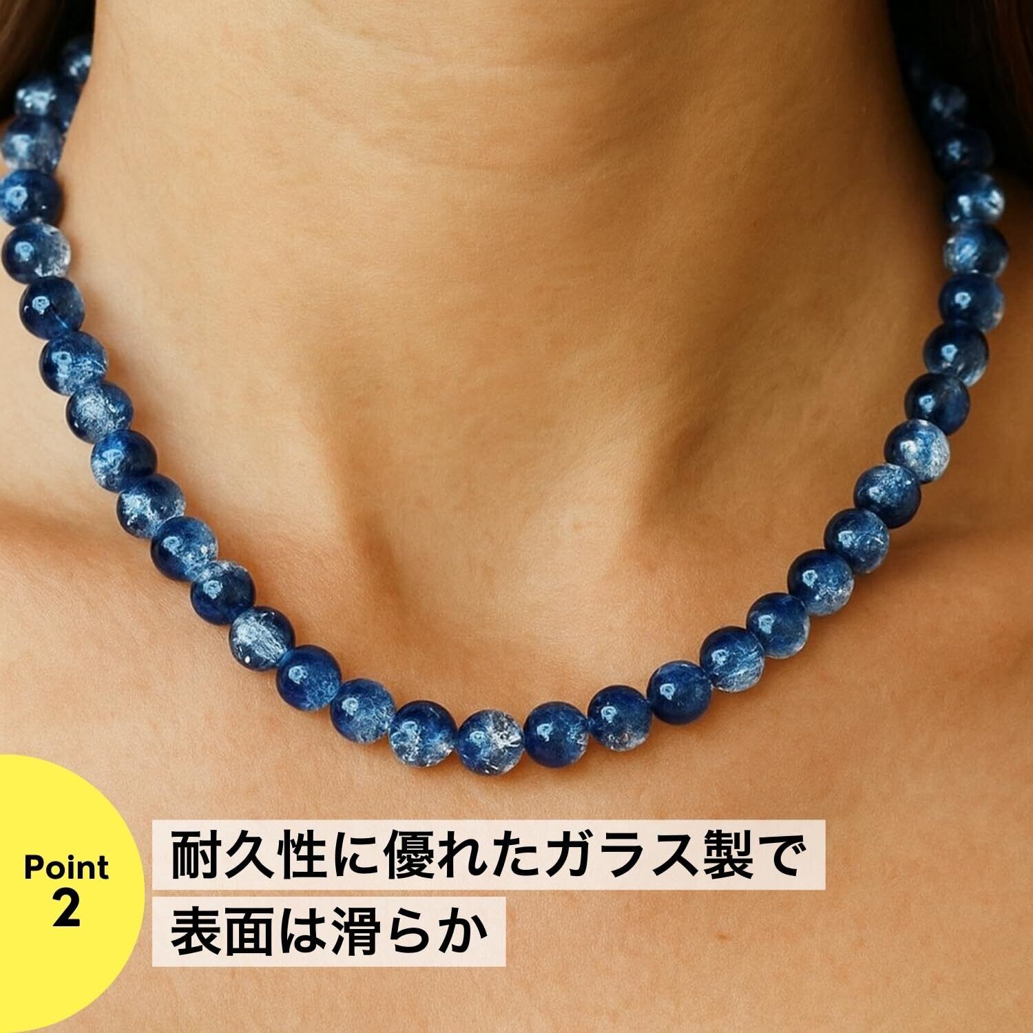 【サイズ・バリエーション】直径10mmの丸型ガラスビーズ。爆花クラック加工が施され、19色のバリエーション展開。1セット100個入りで、手作りアクセサリーや装飾に十分な数量です。
