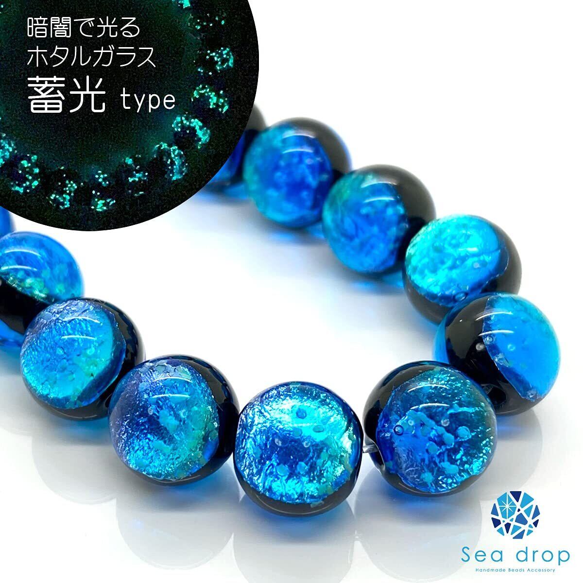 【数量限定】Sea drop 光る ホタルガラス イリオモテブルー 10mm 半連 21玉 約20cmビーズ 蓄光 とんぼ玉 [082htt-10]