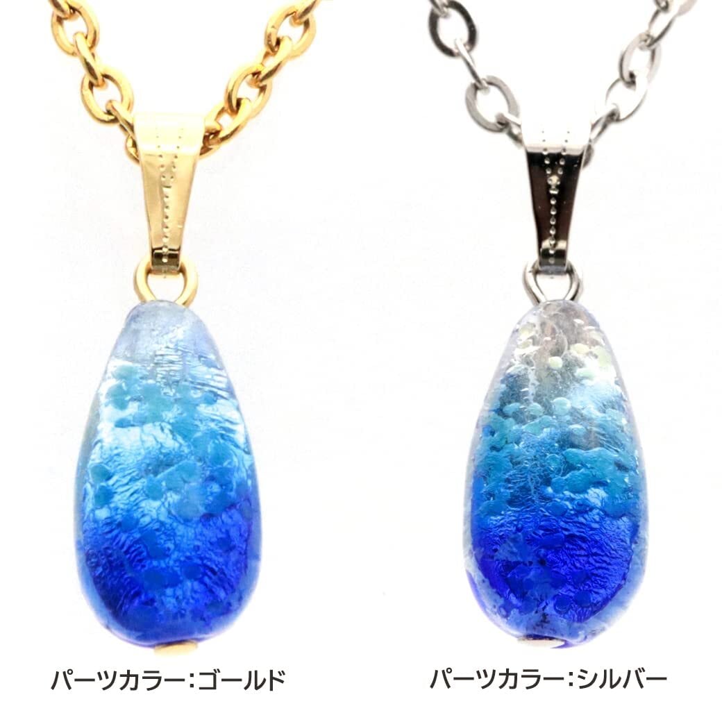 [ONE.ONE] ホタルガラス ネックレス ヨナグニブルー ペンダント しずく ドロップ 光る 蓄光 とんぼ玉 沖縄 お土産 与那国島 (パーツカラー:シルバー)