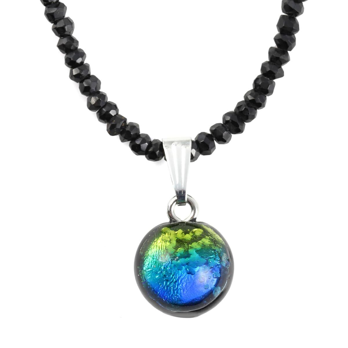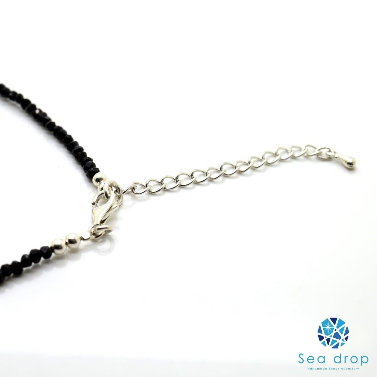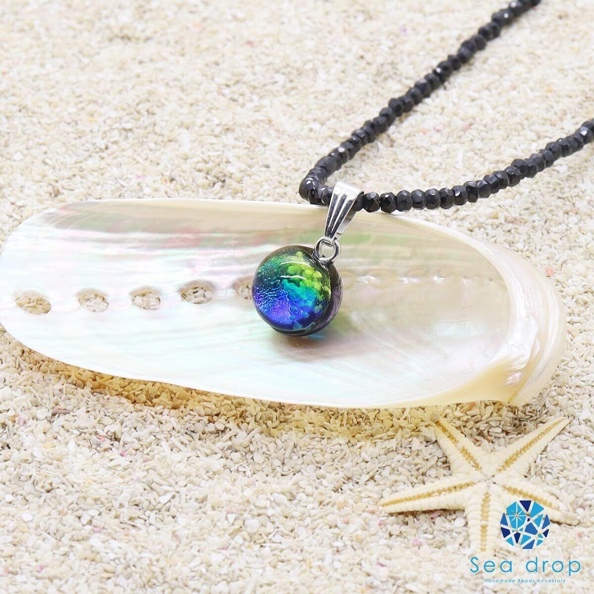 【数量限定】[Sea drop] 光る ホタルガラス ケラママリン 蓄光 ブラックスピネル 3mm ネックレス 40cm +5cmアジャスター 天然石 ビーズ とんぼ玉 [182nt]