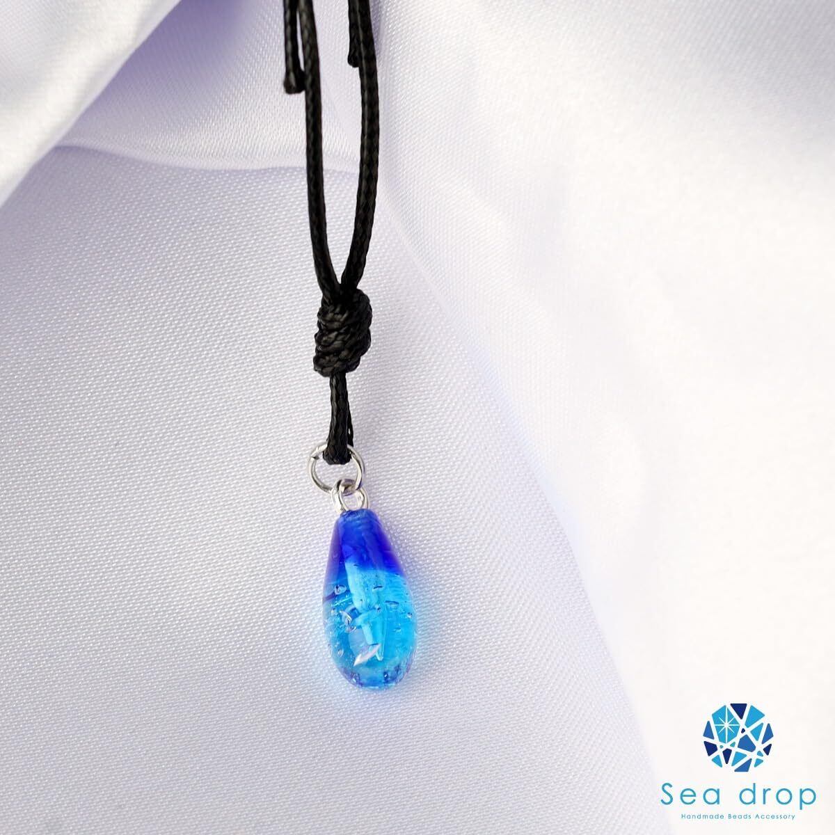 Sea drop クリアブルー しずく型 ネックレス 蓄光 レディース 丸紐ワックスコード アクセサリー とんぼ玉 [291n]