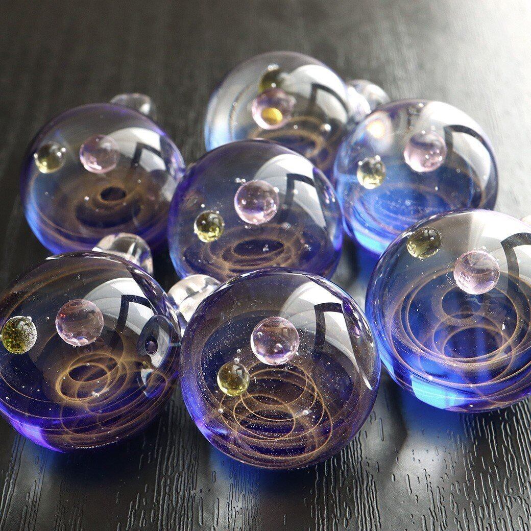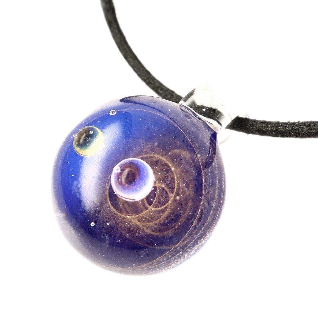 [GOLD STONE] ガラスの中に宇宙を閉じ込めた 耐熱ガラス アート ペンダント 惑星 銀河 幻想的 革紐 ネックレス