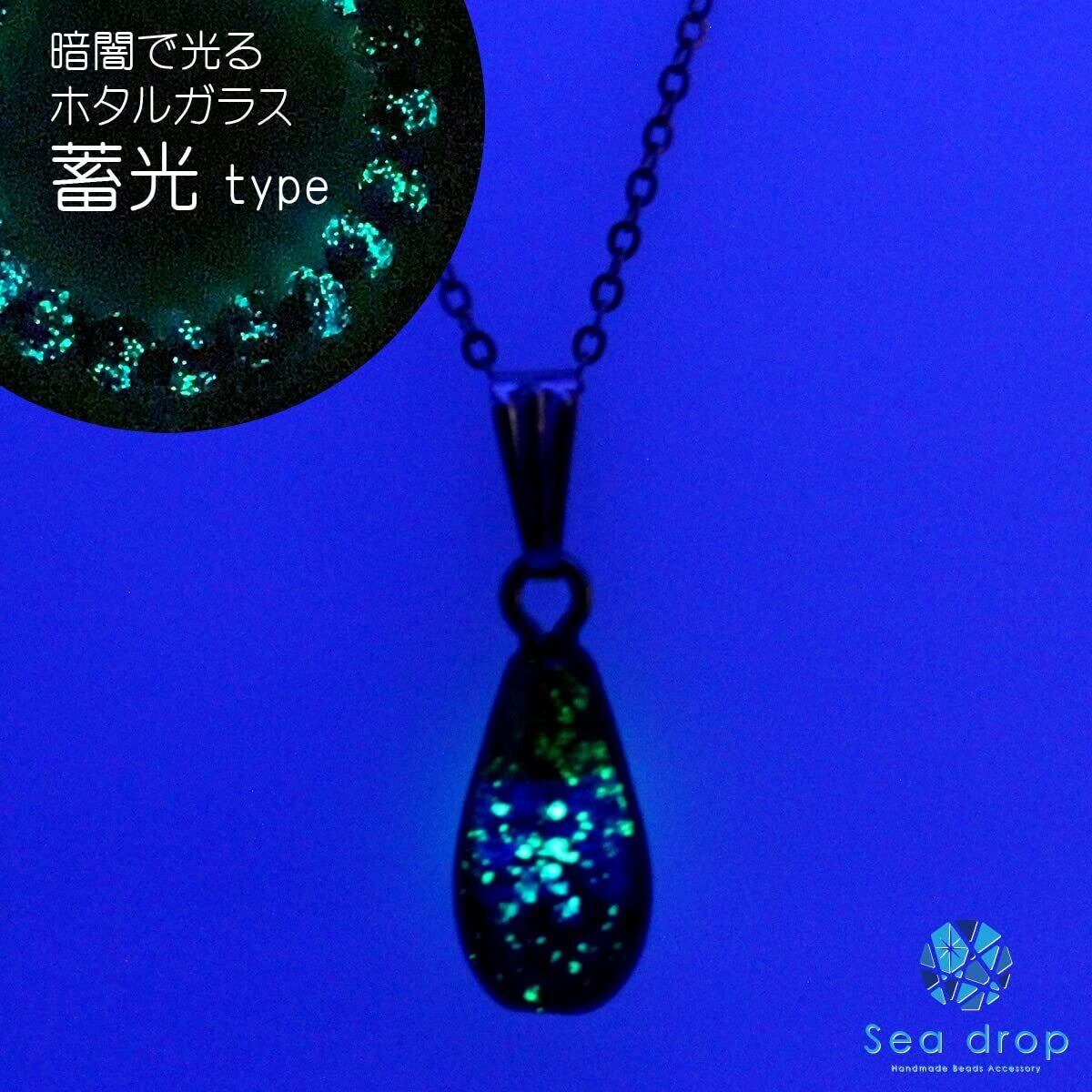 [Sea drop] 光る ホタルガラス ケラママリン しずく型 ネックレス 蓄光 とんぼ玉 ステンレススチール抗アレルギーチェーン レディース [155nt]
