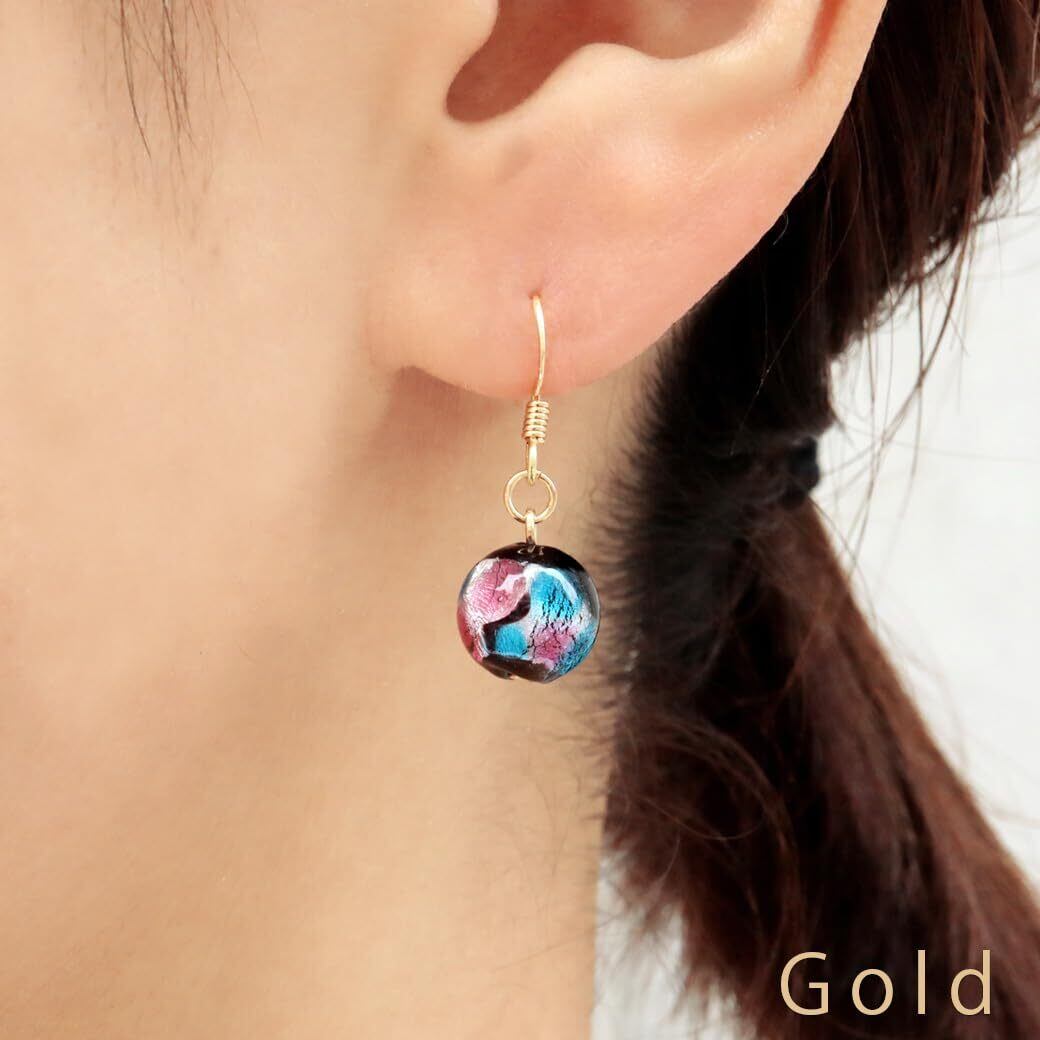 【人気商品】ホタルガラス ピアス レディース ピンク ブルー 桃色 青 可愛い おしゃれ チタン製 とんぼ玉 沖縄 お土産 アクセサリー 琉球 両耳用 フックピアス パーツカラー ゴールド