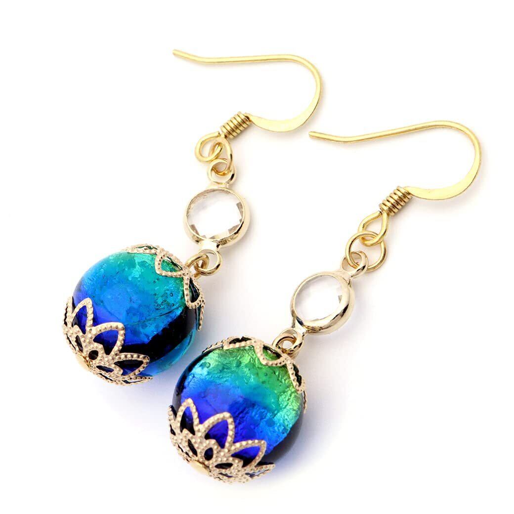 [GOLD STONE] ホタルガラス ピアス レディース 光る ケラママリン フックピアス キラキラ 沖縄 琉球