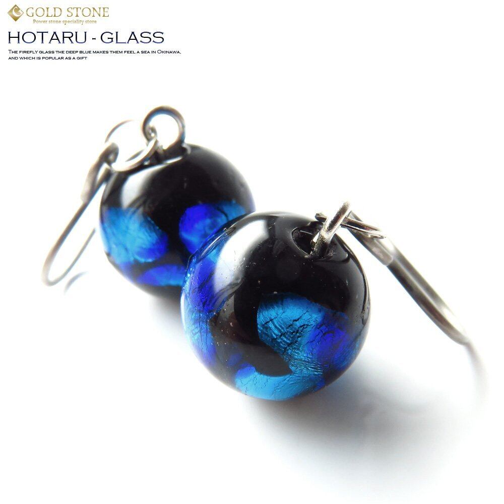 【特価商品】[GOLD STONE] ホタルガラス ピアス チタン製 両耳用 とんぼ玉 沖縄 琉球 ブルー