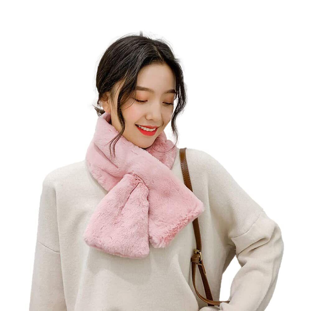 【特価セール】[fourfivesixはる] ティペット ファー マフラー レディース 冬 用 フェイクファー 厚手 無地 ストール フェイクファー防寒 わふわ 起毛 ネックウォーマー 可愛い (ピンク)