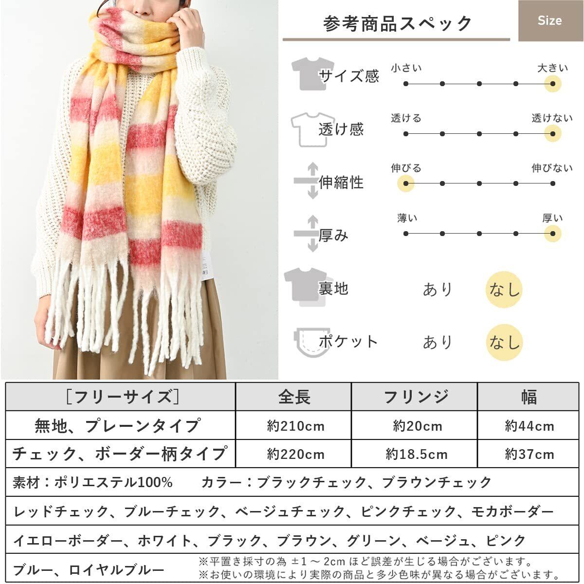 【サイズ】チェック・ボーダー柄タイプ: 全長:約220cm フリンジ:約18.5cm 幅:約37cm ※平置きでの採寸の為、多少の誤差が生じる場合がございます。 【素材】ポリエステル:100%