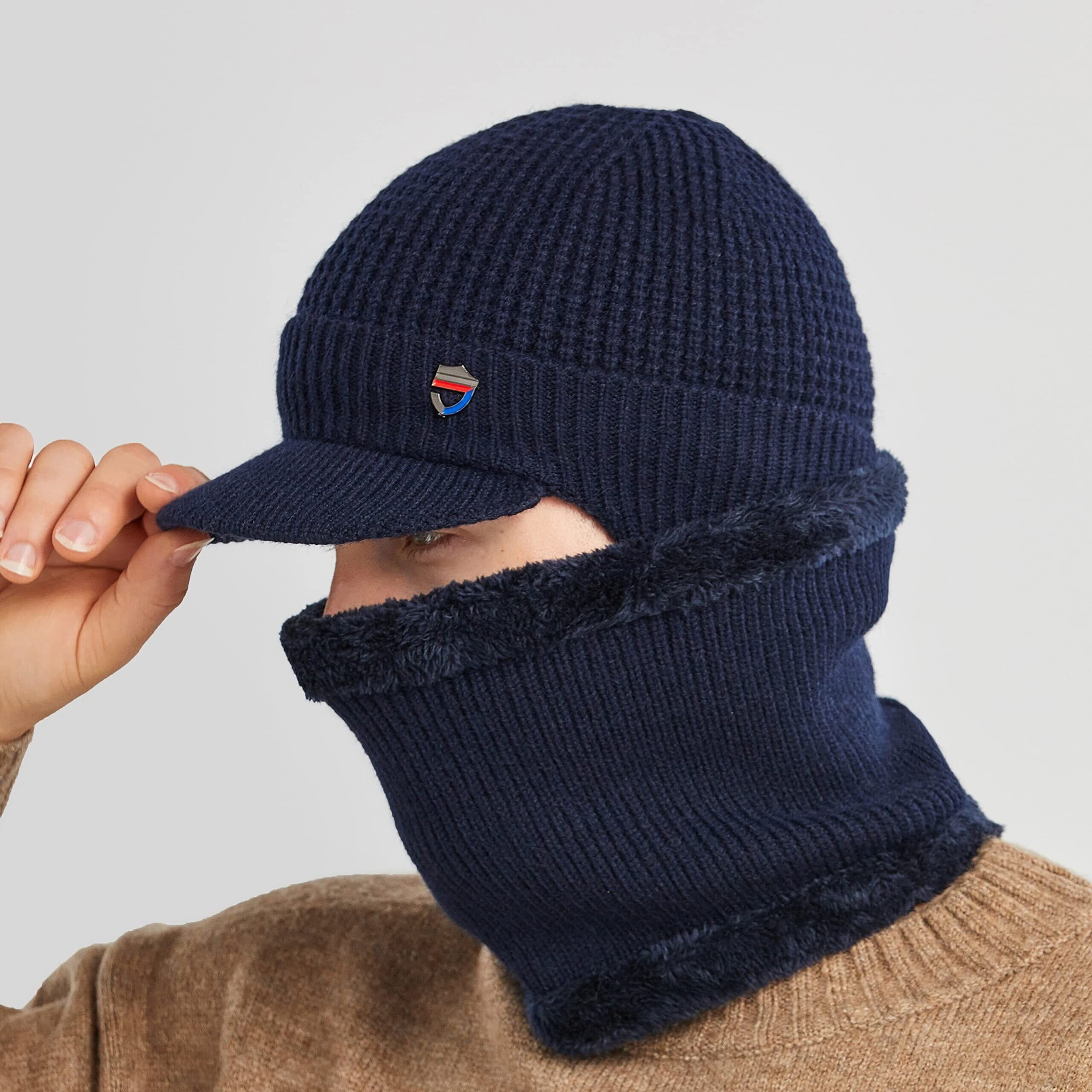 [LeafIn] ニット帽 ネックウォーマー 2点セット 耳当て 帽子 防寒 防風 アウトドア用 スポーツ 釣り 自転車 裏起毛 寒さ対策 伸縮性 メンズ ツバ付き キャップ 厚手 柔らかい 登山 通勤 56-60cm 9116