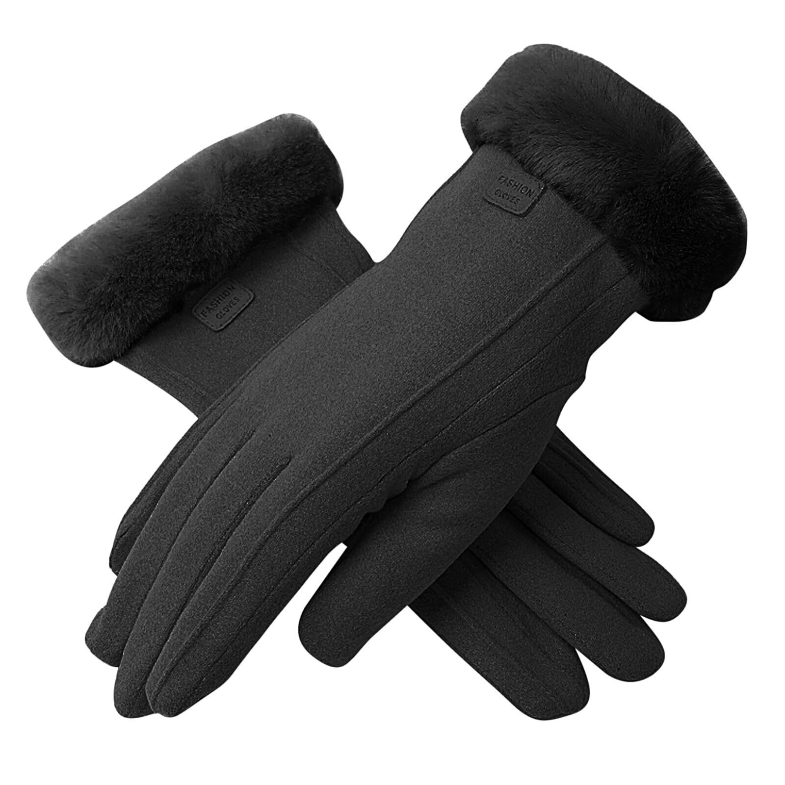 【在庫セール】[AMOVO] 2024年ファー手袋 レディース タッチパネル対応 手首ファー付 ふわふわ 暖かい 裏起毛 通勤 通学 自転車 防寒 防風 女の子 五本指 グローブ