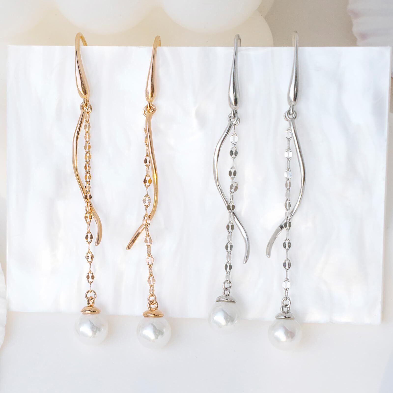 コンパクトなパール:光の屈折で、丸みを帯びた小さい真珠がゆらゆらと揺れ、柔らかな光沢を放ち、ピアスをより洗練された、存在感あふれるものに見せる
