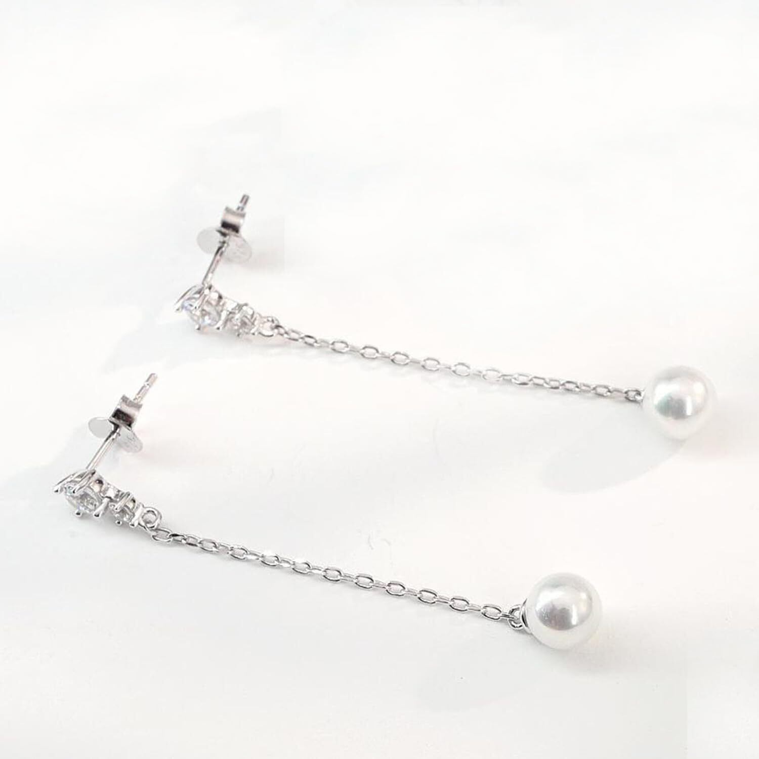 シンプルでエレガント:パールをチェーンに丁寧に連ね、シンプルで洗練されたシルエットに仕上げました。 ピアスに光が当たると、ラウンドパールとシルバーチェーンの間で同時にエレガンスが輝き、耳元を明るく照らします。日常着用に適しているだけでなく、フォーマルな場にも合わせられます