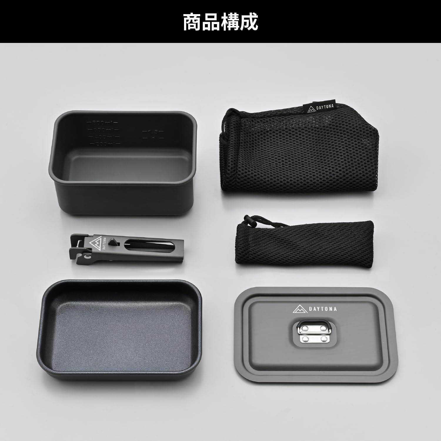 焦げ付き防止加工を施したフライパンとハードアルマイト加工を施した鍋とリッドがセットになったソロキャンプ向の基本調理セット。