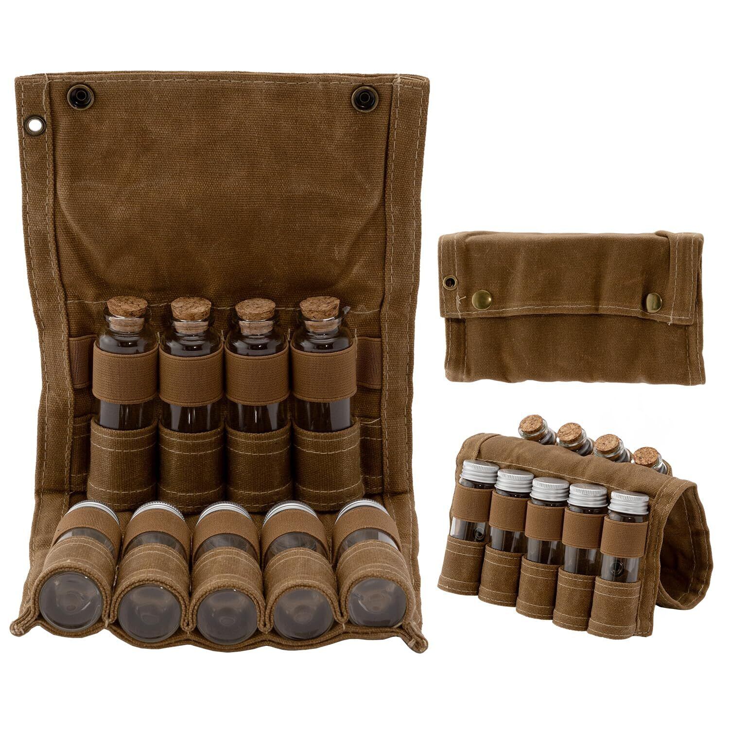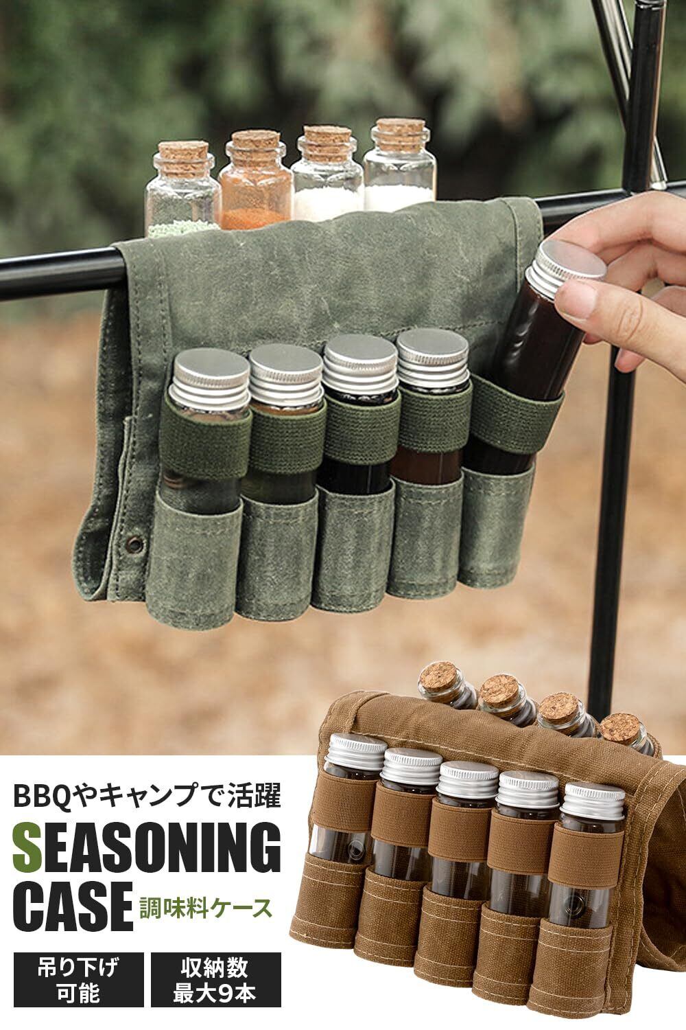 【人気商品】[Frogsnout] 調味料入れ キャンプ スパイスボックス アウトドア 9本収納可能x1本50mlx携帯用x収納ポーチ (カーキブラウン)