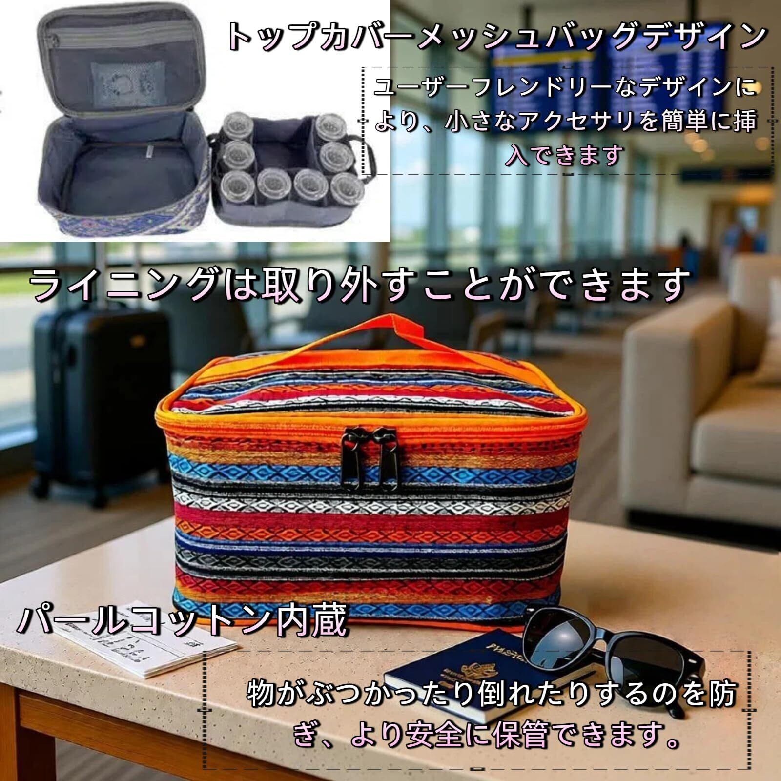 本体は丈夫なポリエステル素材を使用し、各面にはクッション素材が入っている。内部にはメッシュポケットを設けており、小物の保管に役立ちます。それに収納バッグは撥水性はあり、中の物をよく守れます。仕切りは「あなた仕様」にカスタマイズ可能! 裏地は日常生活に小さなものを入れることができます。