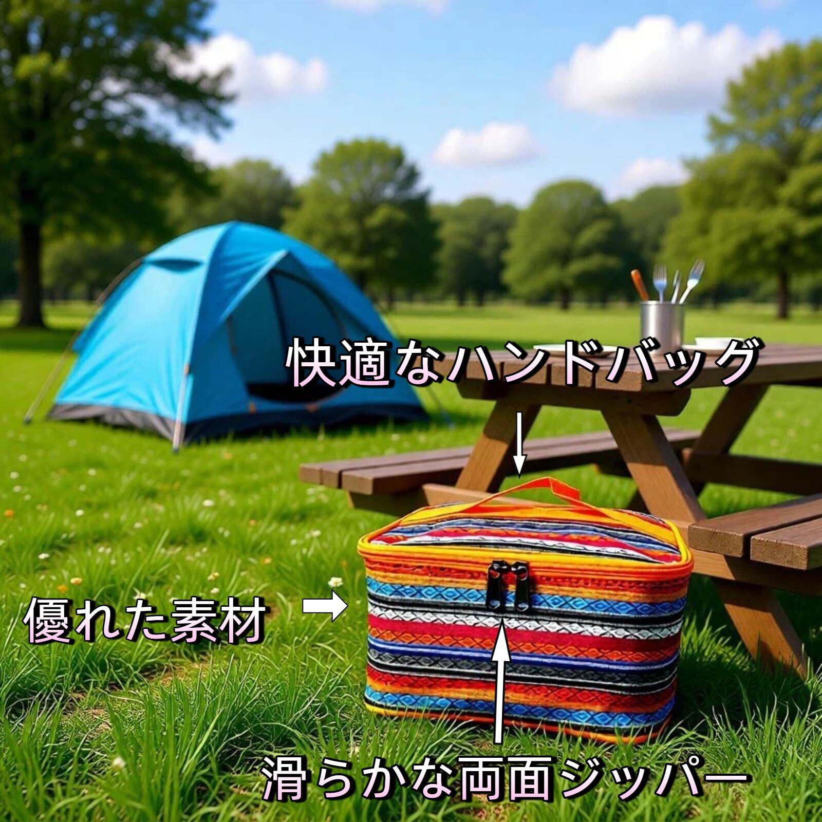 【使用範囲】スパイスケースやお弁当箱など、ちょっとした小物入れとしてお使い頂けます。仕切りを取り外せば、ランチバックスや普段使いの収納ケース、保存容器など、幅広くご利用可能。キャンプのバーベキューでは勿論ですが、ピクニック、運動会、子供会、お花見等いろんな行楽の行事にお使い頂けます。