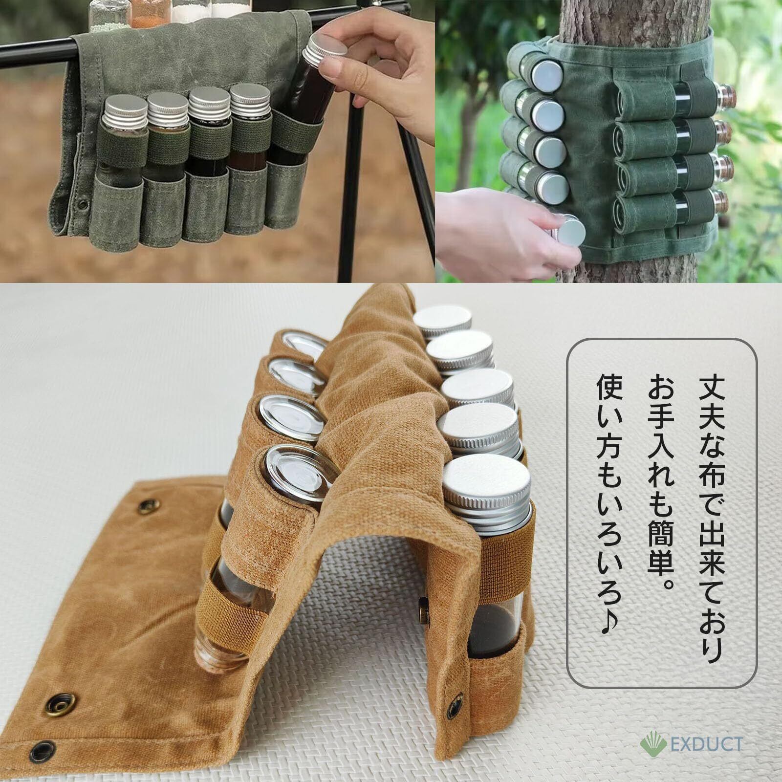 調味料ケース オリーブ 調味料入れ スパイスボトルケース 持ち運び スパイスボックス コンパクト 吊り下げ 調味料ボトル キャンプ アウトドア ピクニック BBQ