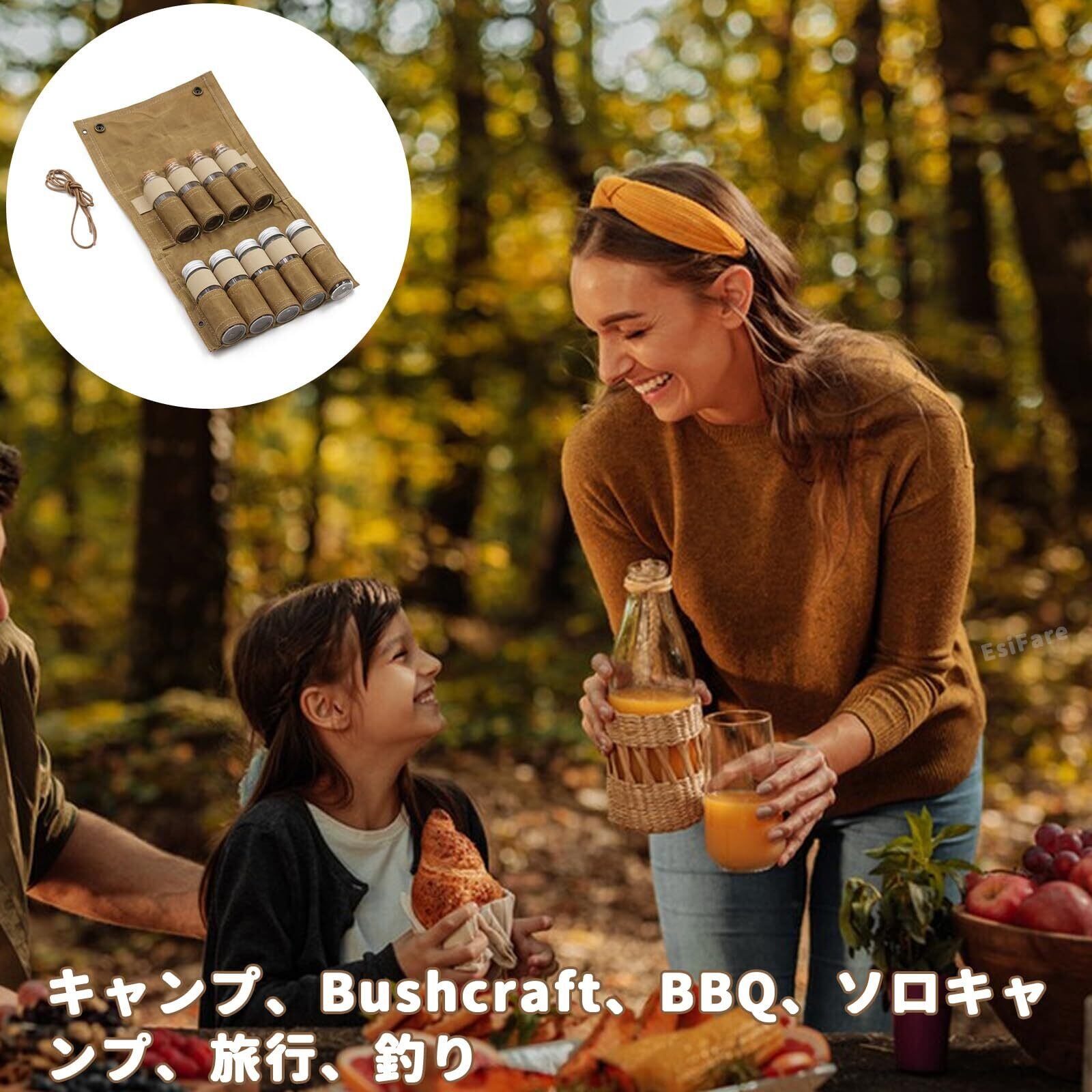 【高品質スパイスボックスセット】このアウトドア用調味料入れは密織のオイルワックスキャンバスを採用し、パラフィン加工で優れた撥水性を実現します。頑丈でありながらお手入れも簡単です。無毒・高品質なガラス製スパイスボトル9本付きで、安心して使用できます。