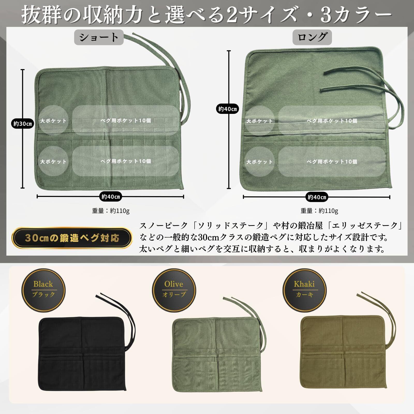 Space fire ペグケース ペグ収納ケース 帆布製 エリッゼ 30cm 鍛造ペグ対応 (オリーブ)