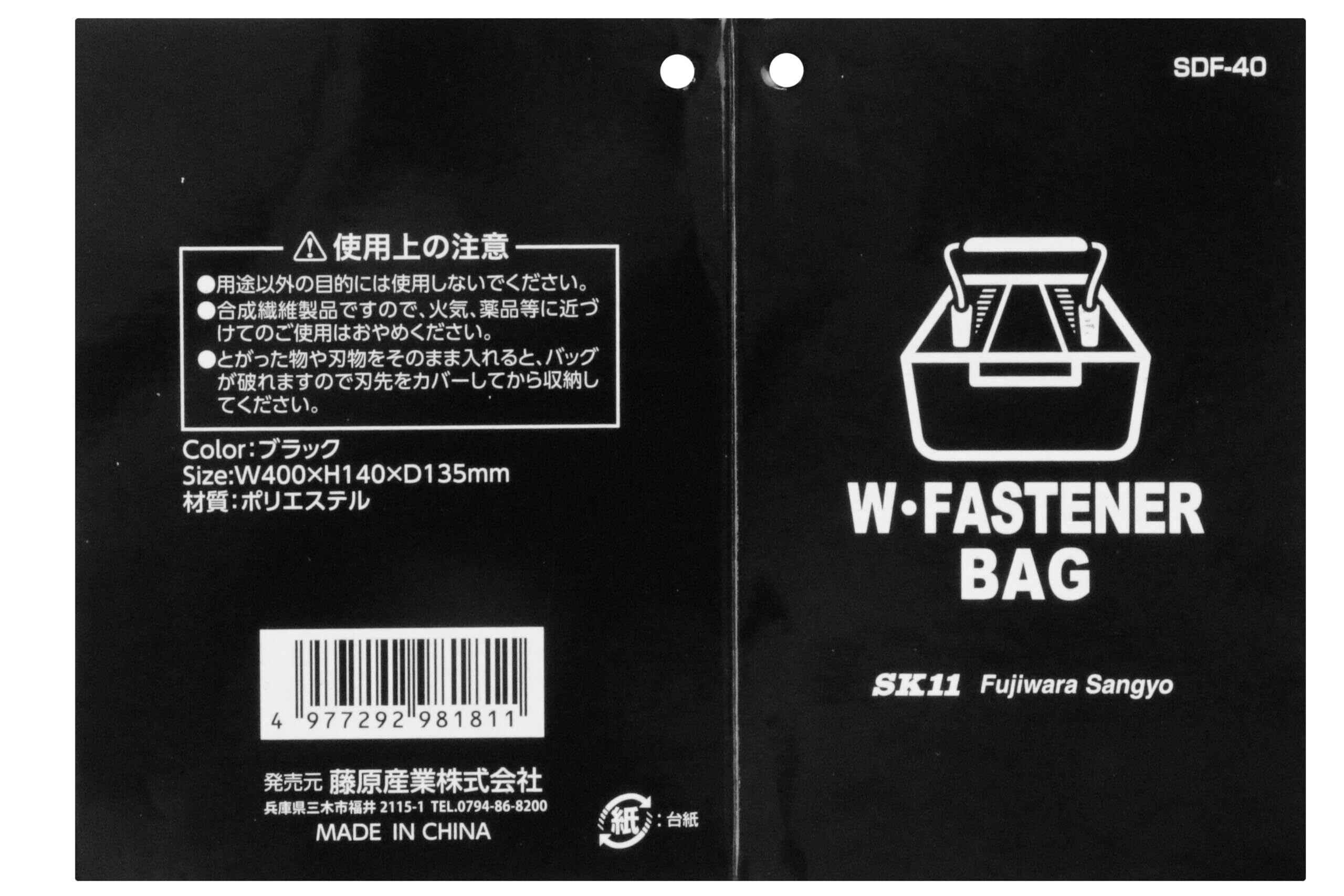 SK11(エスケー11) ダブルファスナーバッグ 400×135×140mm SDF-40