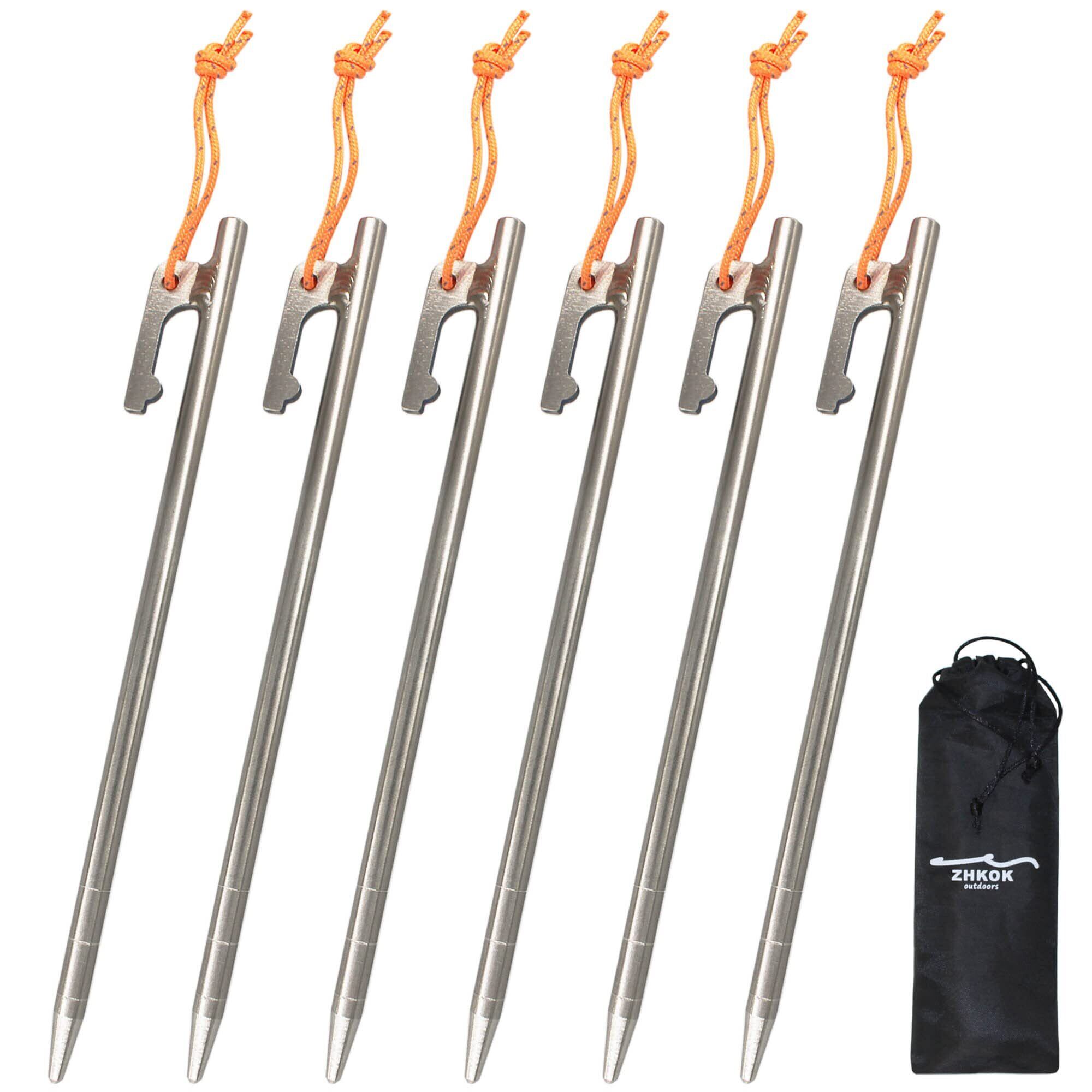 【強靭】チタン合金製で鋼鉄以上の強度を持ち、強度においては鍛造ペグに負けず、硬さと貫通力に優れています。芝生、土はもちろん、真っ冬などの硬い地面、砂利の多い地面、岩場などでも曲がらずに入っていきます。【使いやすい】細長く滑らかな先端で、打ち込みやすさと同時にけが防止できます。ヘッド部分は丸く平らで打ちやすいです。フックはU字型デザインで撤収時に抜けやすくなります。