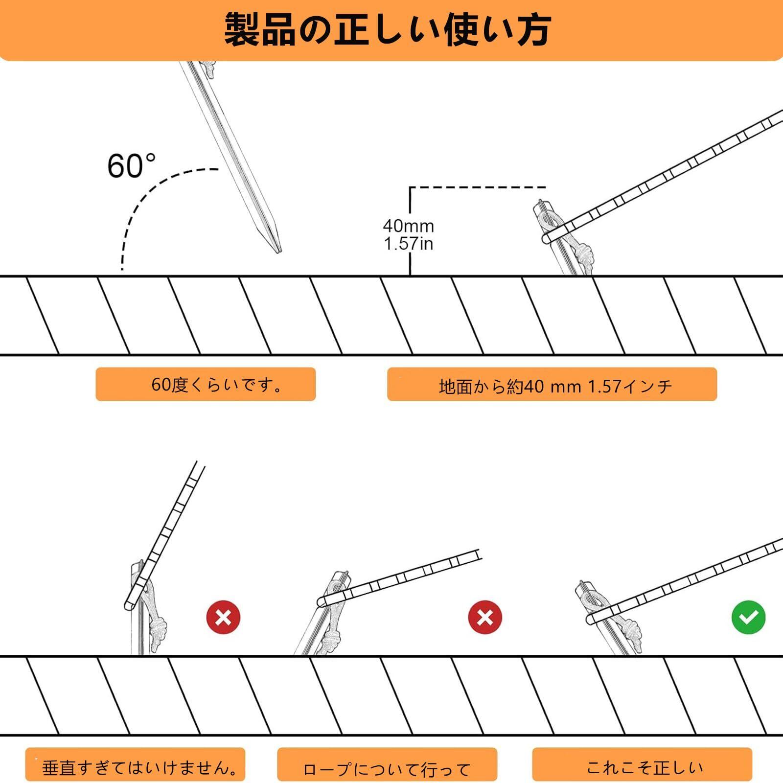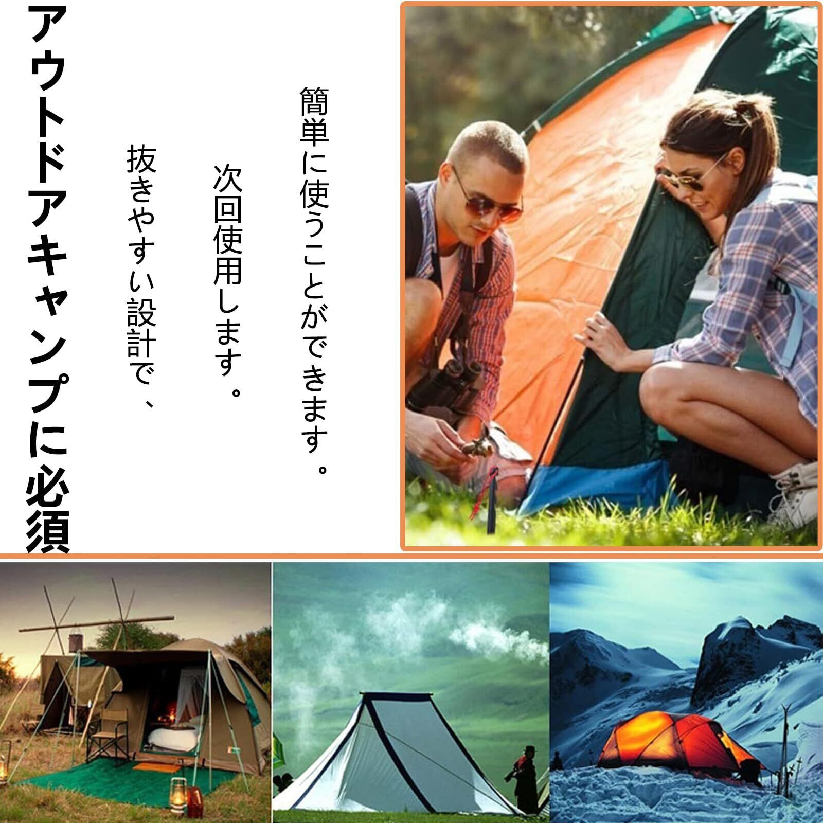 【打ち込みやすい】 キャンプ ペグの先端は鋭角なので地面に差し込みやすい! また、円柱形のヘッド形状だからこそ。ハンマーで叩く際に滑りにくいので、打撃力を確実にポディに伝えます。土・砂浜・芝生など、地面に左右されず打ち込むことが可能に。
