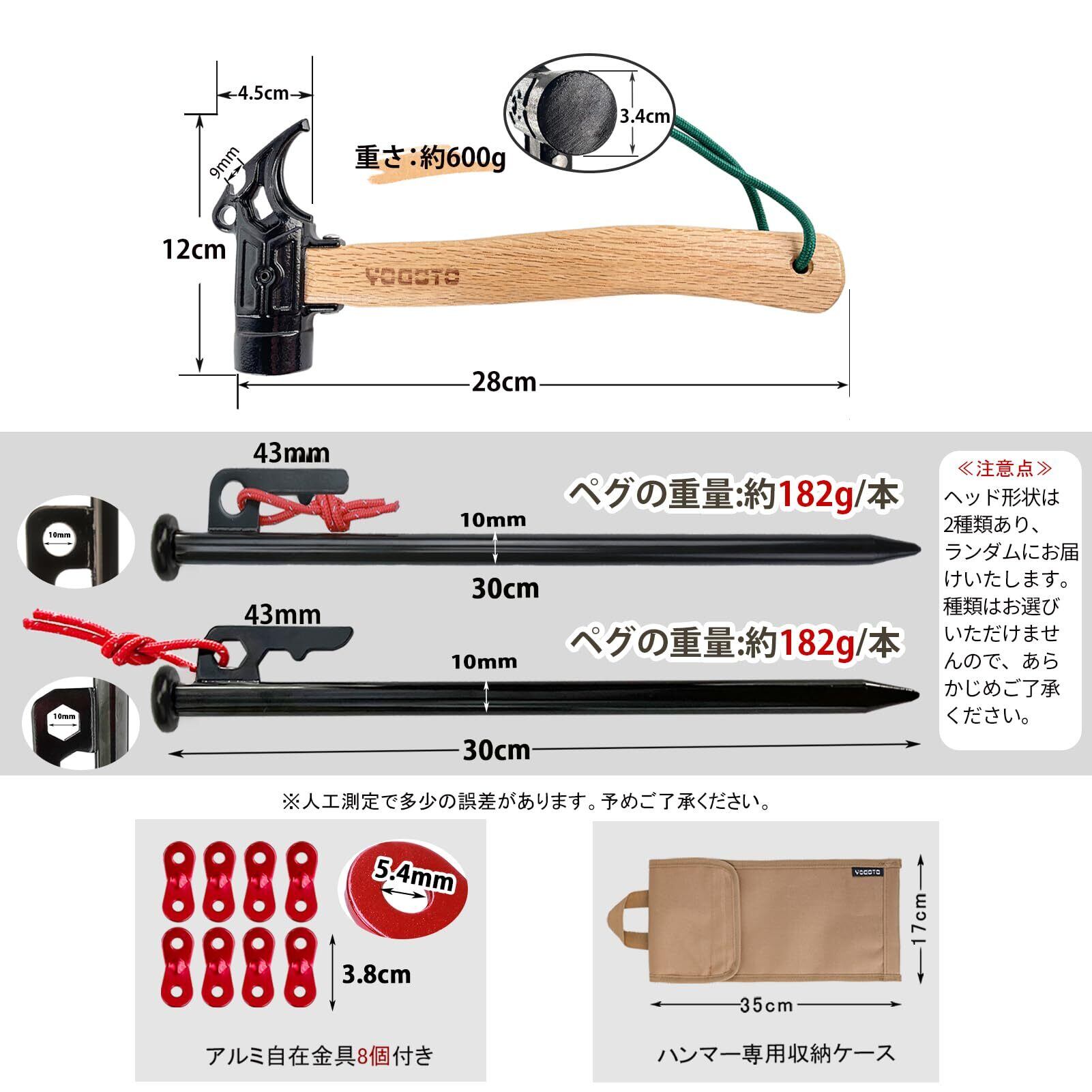 【新着商品】【YOGOTO】 30cm ペグ セット 硬い土 砂地 草地用 タープペグ φ10mm ステーク テントペグ ペグセット 収納 ケース付き 自在金具 付き (30cm8本とハンマーと自在金具と収納ケースのセット品)