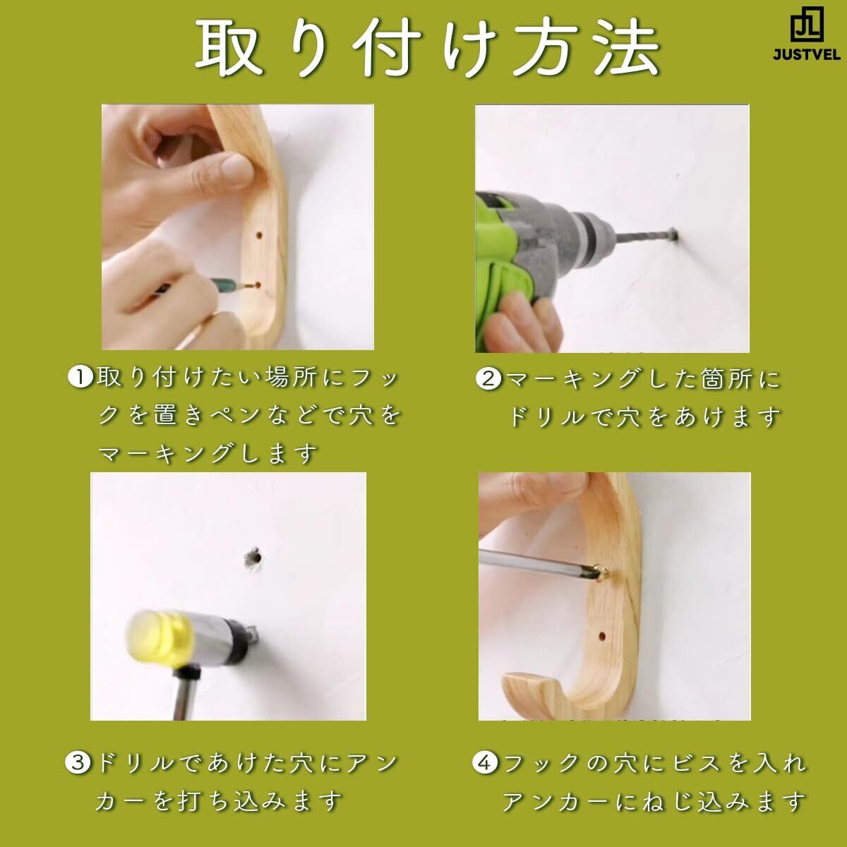 【新着商品】JUSTVEL 壁掛けフック 4個セット 石膏ボード 木製 L字フック ウォールフック 石膏ボード壁 コート掛け ウォールハンガー 収納用