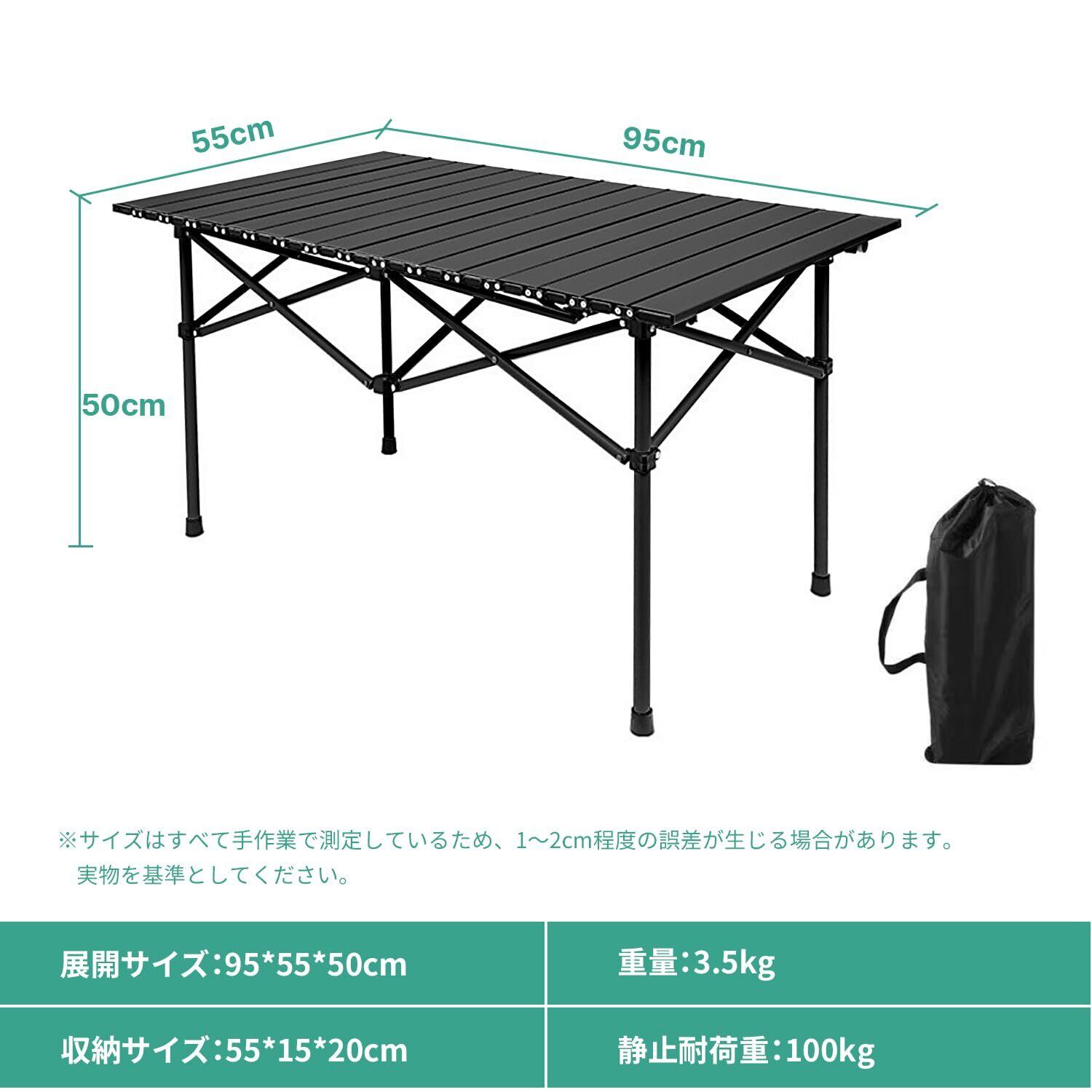 【特価セール】GFUN アウトドア テーブル 折りたたみ 軽量 コンパクト 耐荷重100kg 折り畳みテーブル ロールテーブル キャンプ バーベキュー ハイキング ピクニック 収納バッグ付き 95cm ブラック
